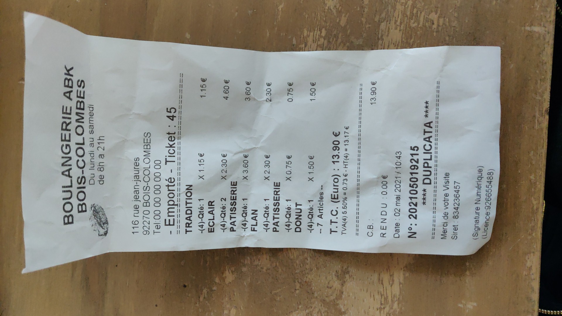 Je fais appel au patron de cette boulangerie d'arrêter le comportement malhonnête de son salarié qui encaisse une dame ne parlante pas le français au 02 mai a 10h43, elle a pris seulement une éclaire mais elle nous a facturé 2, elle insiste de ne pas donner le ticket de caisse. Heureusement cette dame a insisté de le récupérer, et bin, elle a bien raison. C'est vraiment malhonnête et c'est pas appréciable du tout dans une petite commune comme bois-co.