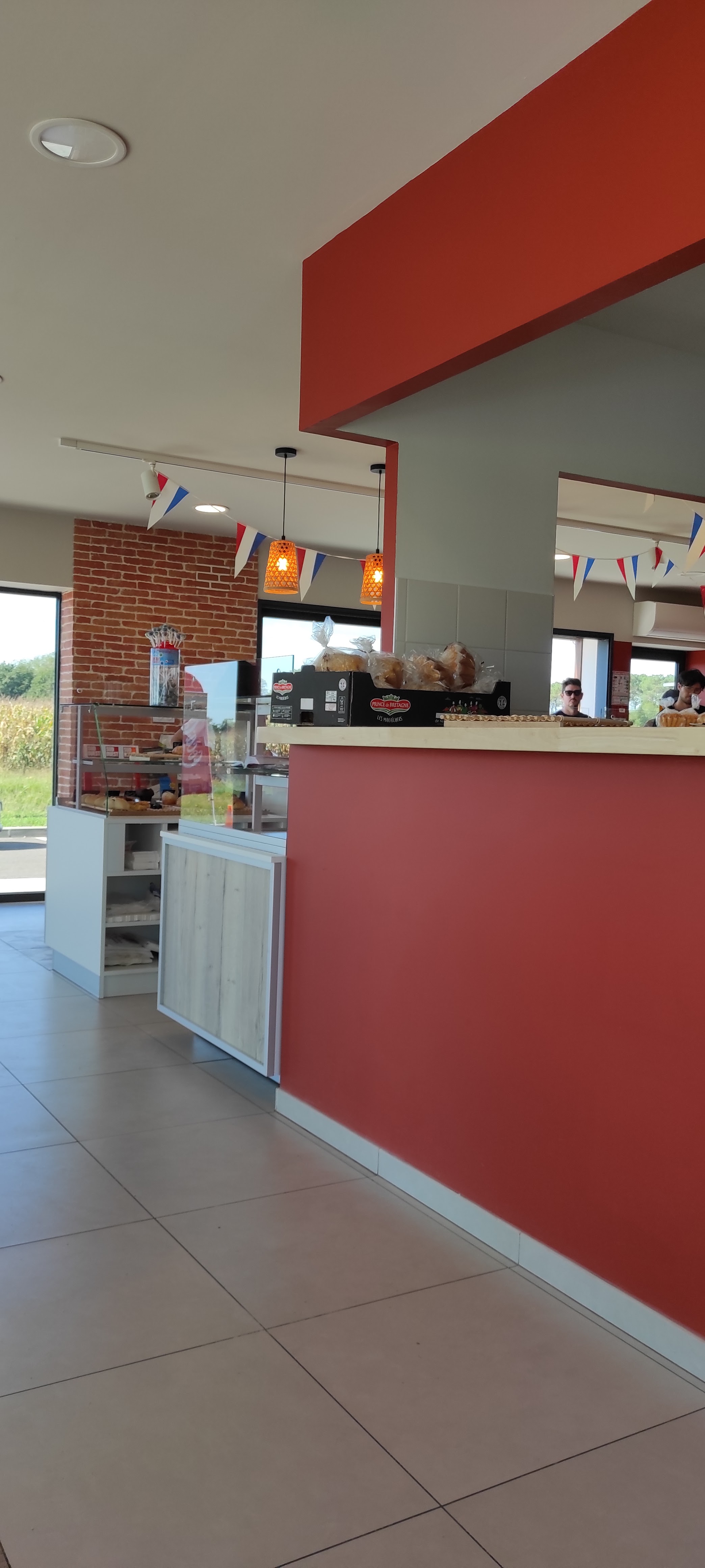 très belle idée à cet endroit , Néanmoins le parking , l'implantation de la zone l'organisation de la circulation a été pensée par des idiots sur ordinateur surpayés , personnel très sympathique , viennoiserie malheureusement de piètre facture l'industrie étant son bras jusque dans nos campagnes , donc belle idée de fond mais peut s'améliorer sur la forme !,