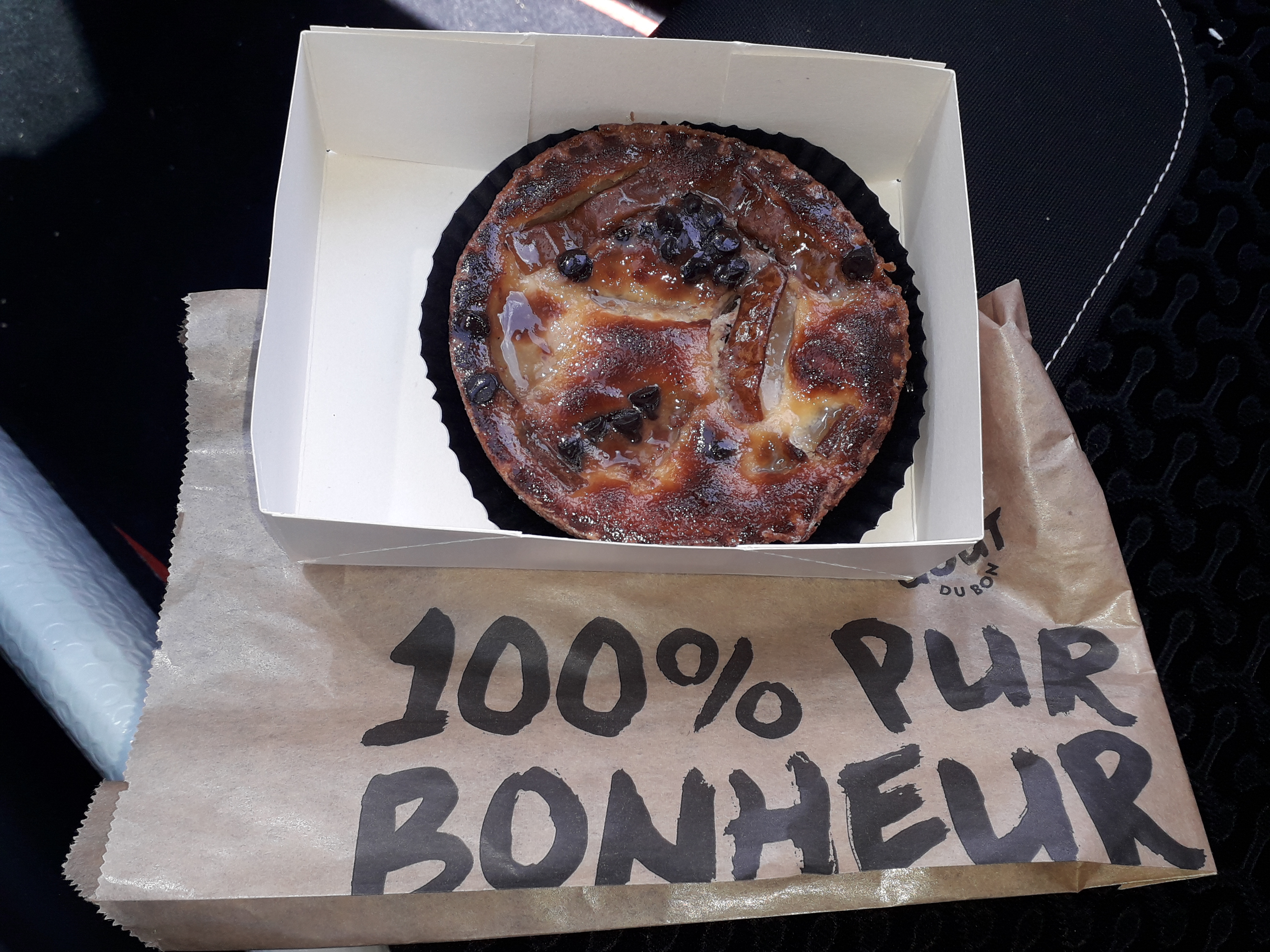 Nous nous sommes arrêtés pour prendre un goûter. La viennoiserie de mon mari avait un gout ranse et j'ai la nausée depuis. Évitez le flan.Pas de chance.