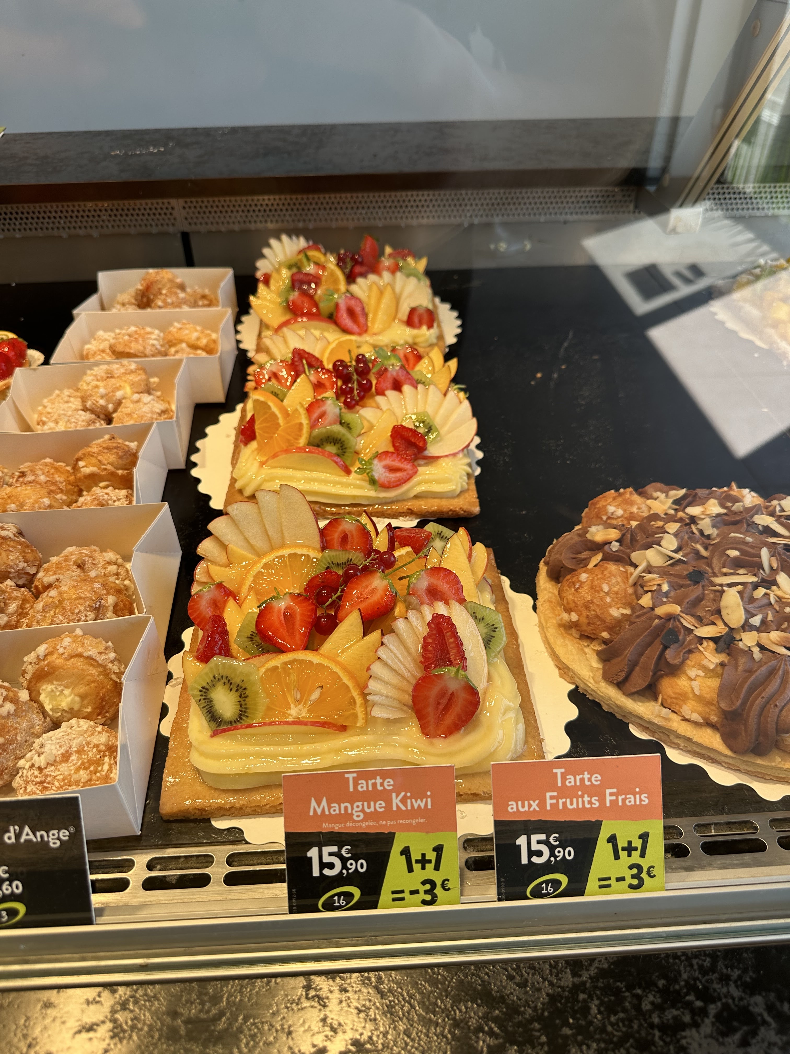 Les pâtisseries sont bonnes malgré qu'elles sont issues du congélateur. Les viennoiseries sont bonnes malgré que elles aussi soient issues du congélateur. Maj 10/01/21 nous avons été extrêmement mal accueilli et pratiquement insulté par une vendeuse non professionnelle et qui ne respecte pas la clientèle. Nous ne reviendrons plus jamais dans une boulangerie Ange.