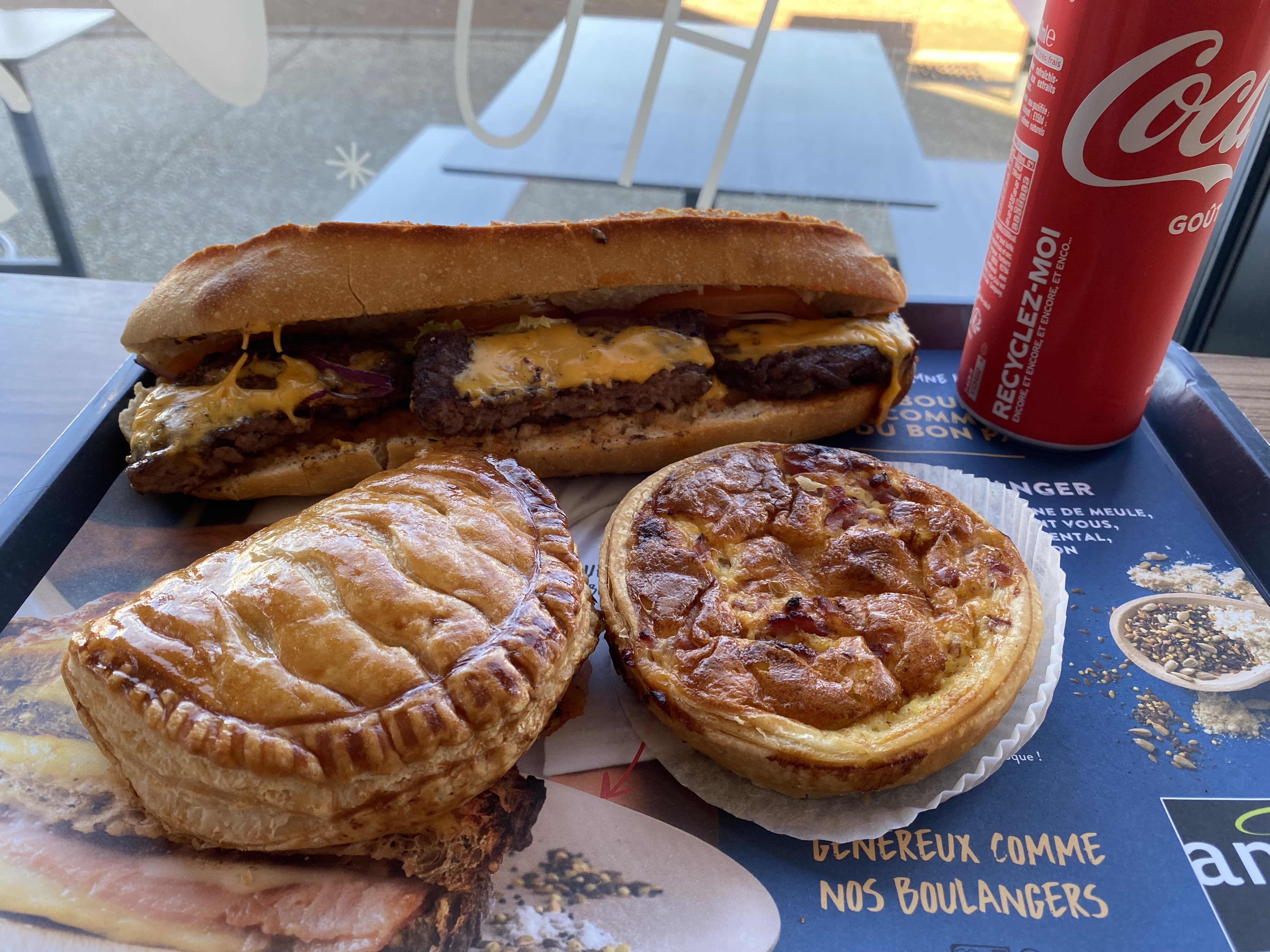 de passage en transit de la Bretagne vers le Var Une quiche Lorraine au top et très bien garnie. un sandwich poulet à la provençale qui a bien calé mon mari on goûtera plus tard les croissants, pains au chocolat et chaussons aux pommes