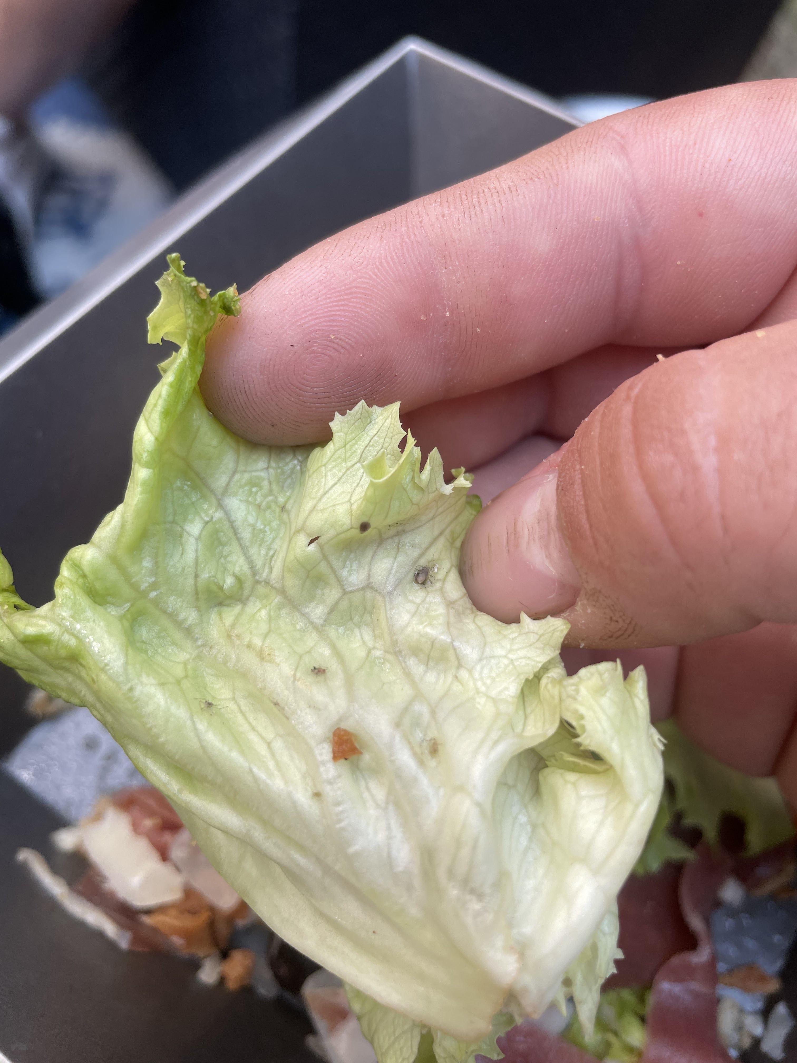 Nous venons d’aller chercher une salade, est arriver à la fin de la salade ma compagne s’aperçoit que la salade pas nettoyer et plein de bêtes ! Inadmissible ! Photo d’un bout de salade ! Sur le coup si je pourrais mettre 0 je le ferait sans hésité !