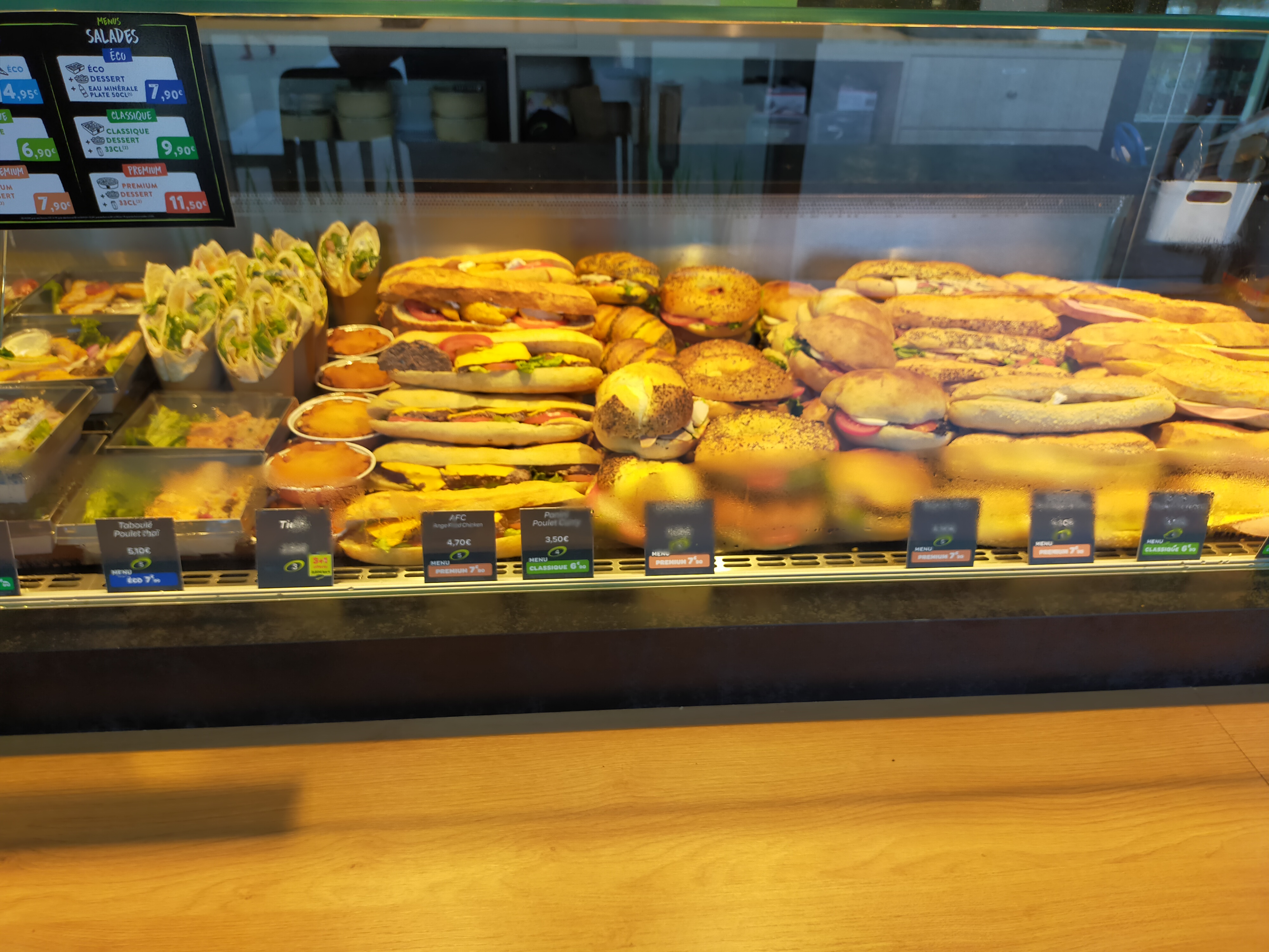 Il y a beaucoup de choix. Les produits sont bons. Cependant, il arrive quasi systématiquement que les sandwichs chauds chauffés sur place ne le soient pas assez et soient froids de l'intérieur, d'où les deux étoiles en moins. Edit : Je mets à jour mon avis. Malheureusement, après plusieurs passages, il semble que le problème soit toujours d'actualité. Il arrive assez souvent que les sandwichs chauds ne soient pas assez chauffés et soient froids de l'intérieur