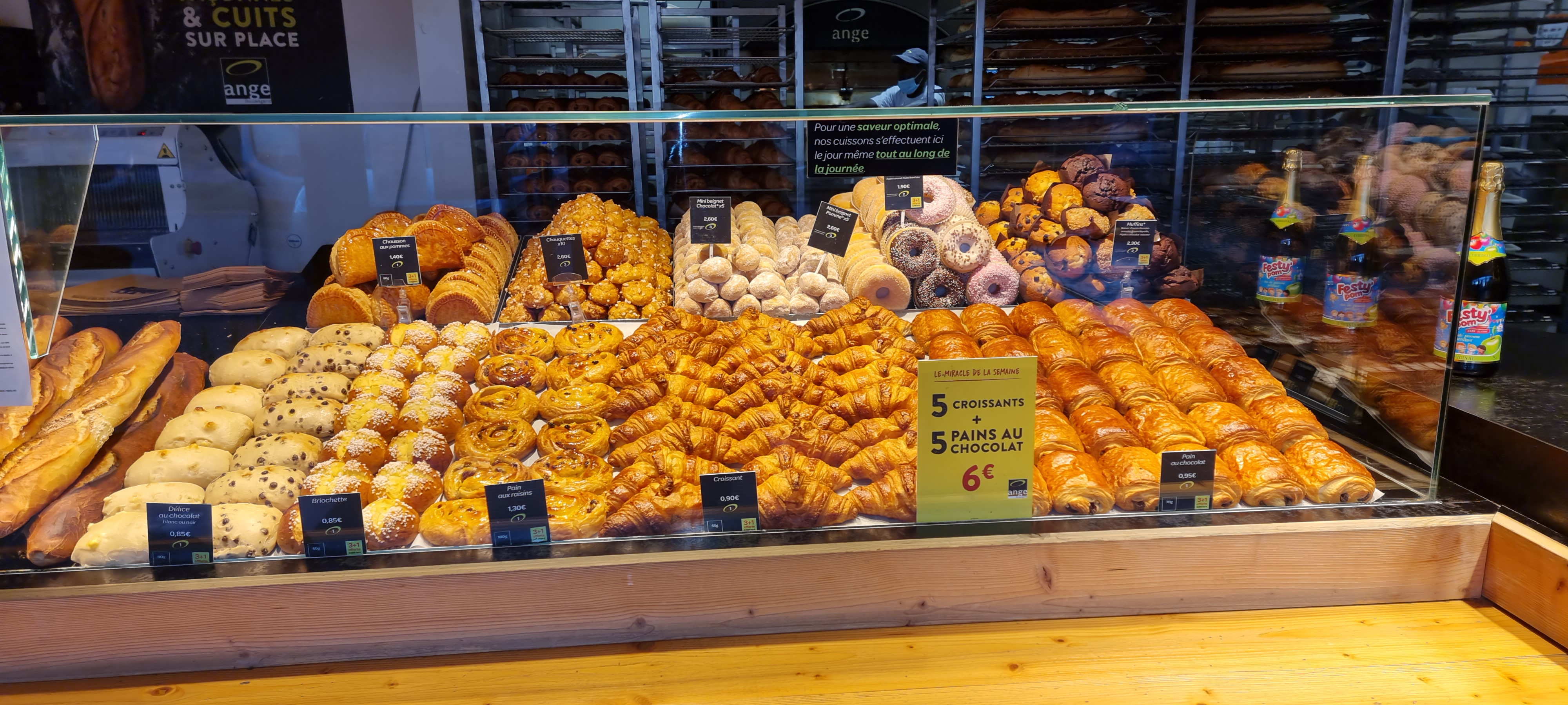 Jvais prendre les pâtisseries et bien sûr mon pains labas mais beaucoup de mondes personnel bordélique parfois ya pas de pains finalement. y'en a tu attend il font passée les gens devant toi et ça fait des embrouilles bêtement...