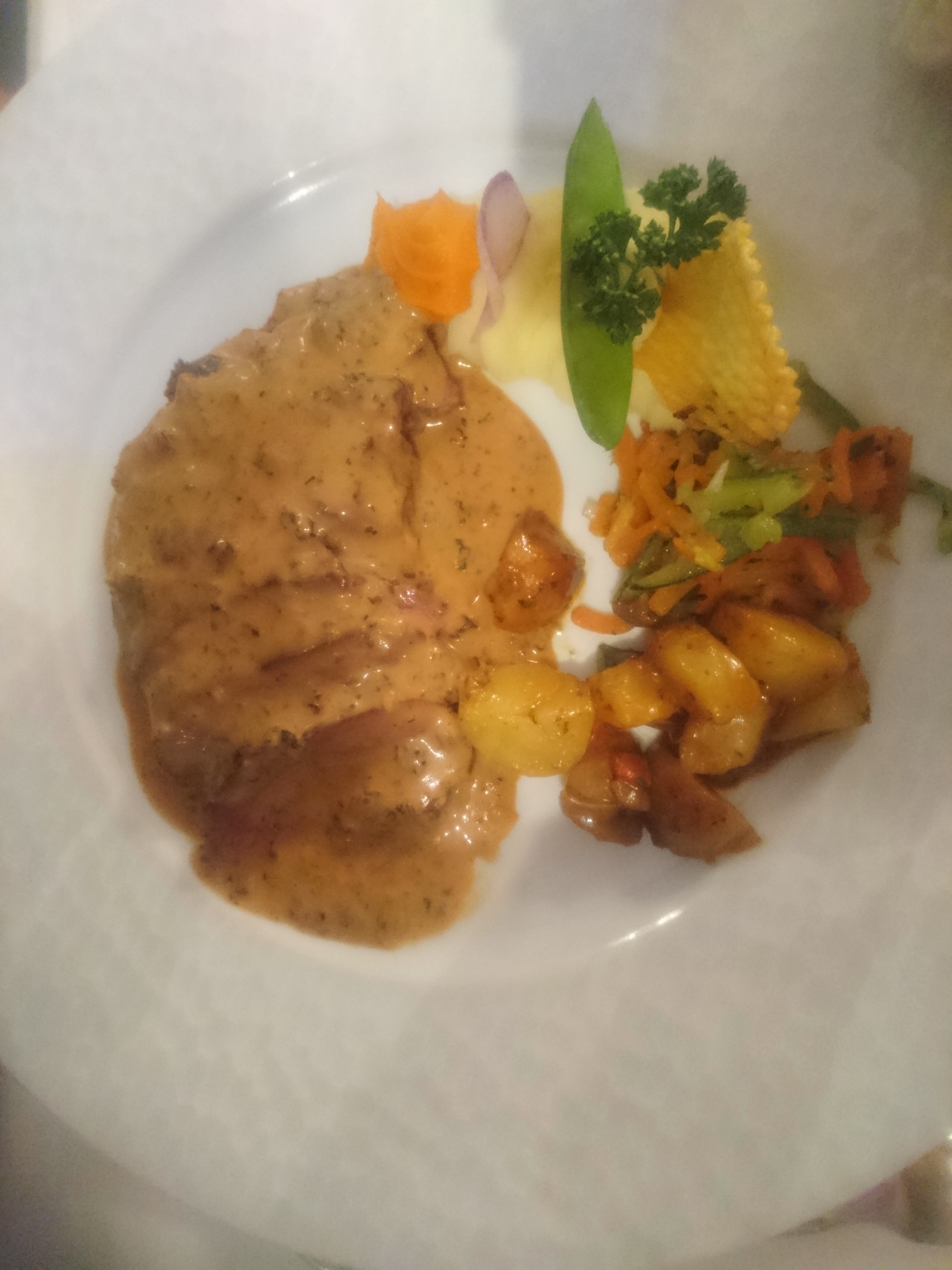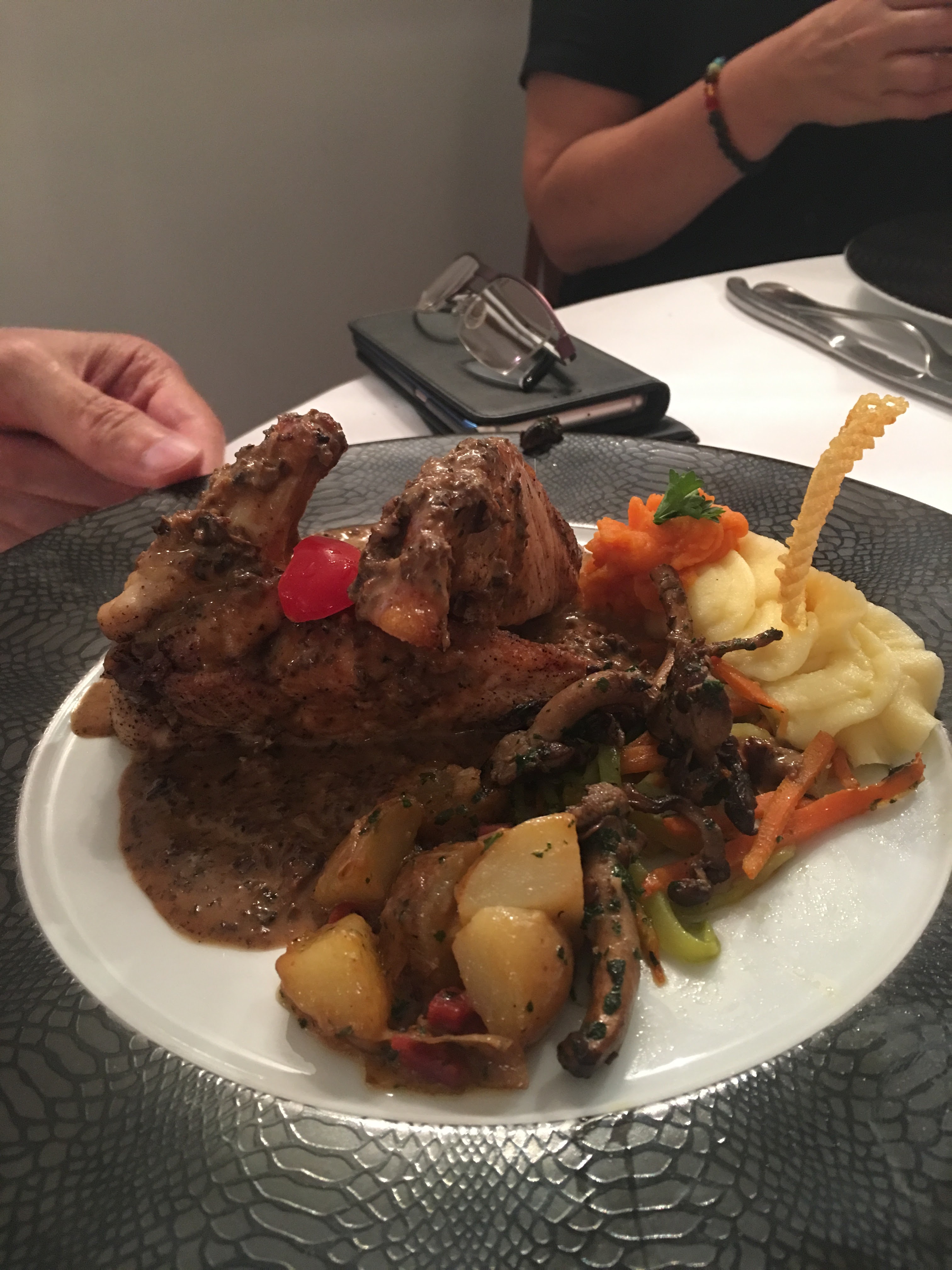 Saveurs raffinées et quantités suffisantes. N'aimant pourtant pas trop les champignons, la sauce aux morilles accompagnant le suprême de volaille était un délice. Accueil très agreable, service impeccable. Nous somme quatre du même avis