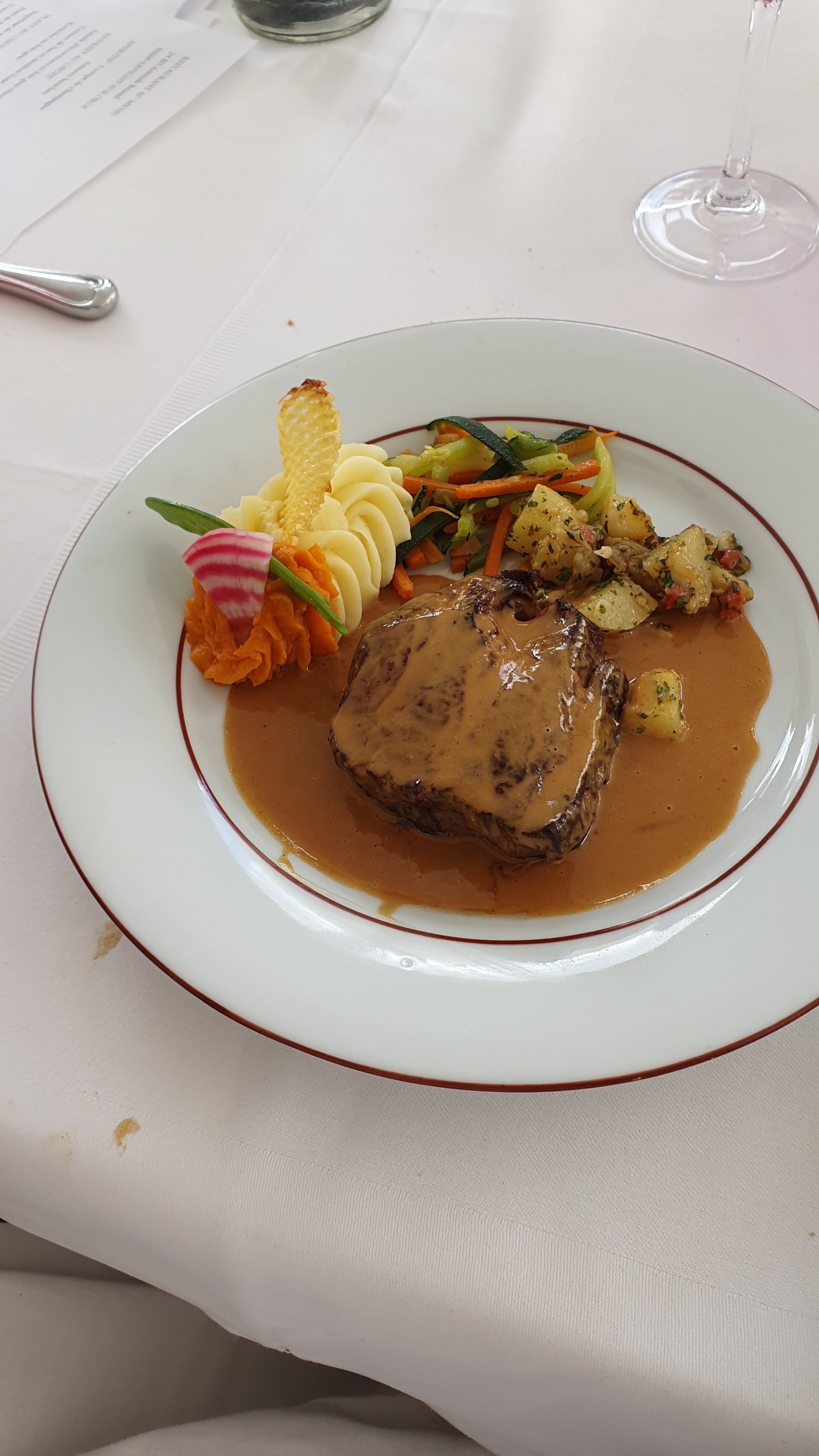 On a vraiment bien mangé !! Le chef nous a vraiment chouchoutés 😊 le tournedos fondait dans la bouche ! Tout était très bon ! Je recommande vraiment ce restaurant ! La décoration est aussi magnifique et les serveurs sont super accueillants et patients ♡ merci encore !!
