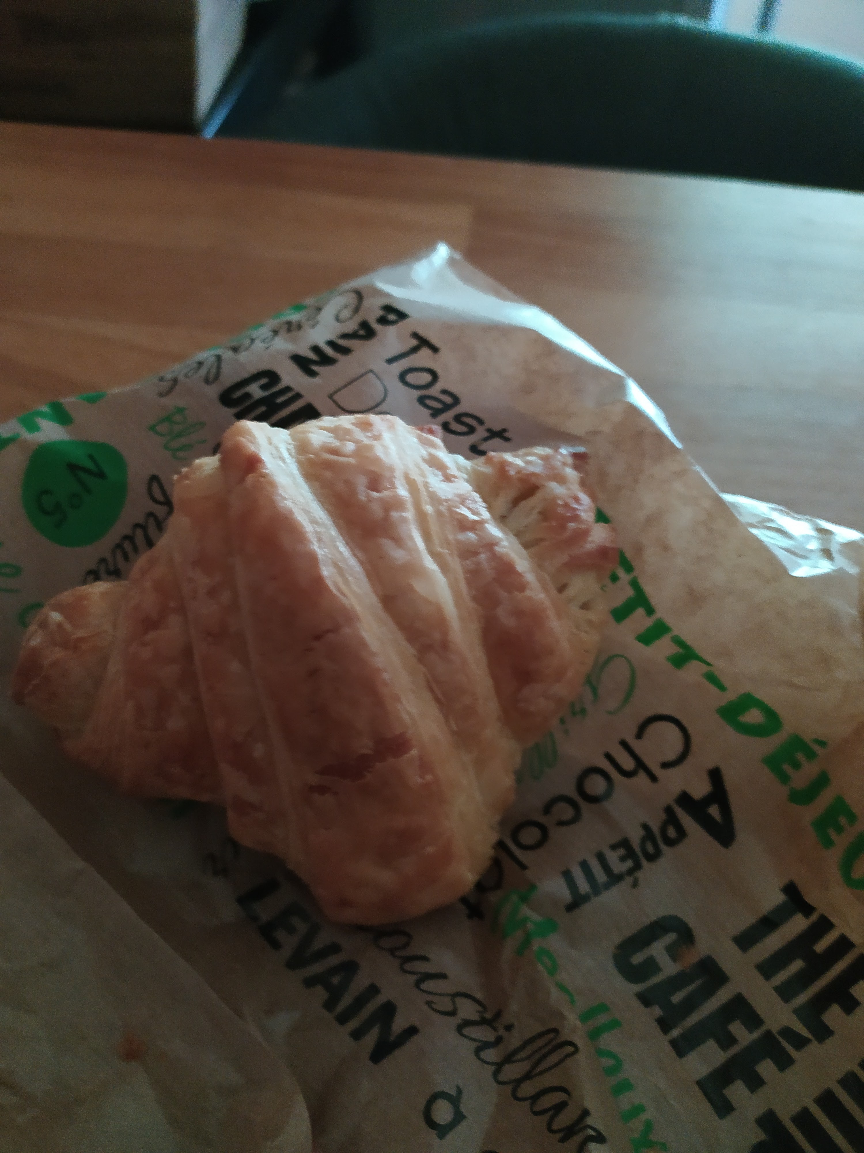 Pâtisserie trop moyenne. Viennoiserie sèche très vite. Le lendemain, impossible de finir un croissant. Juste le pain est ok