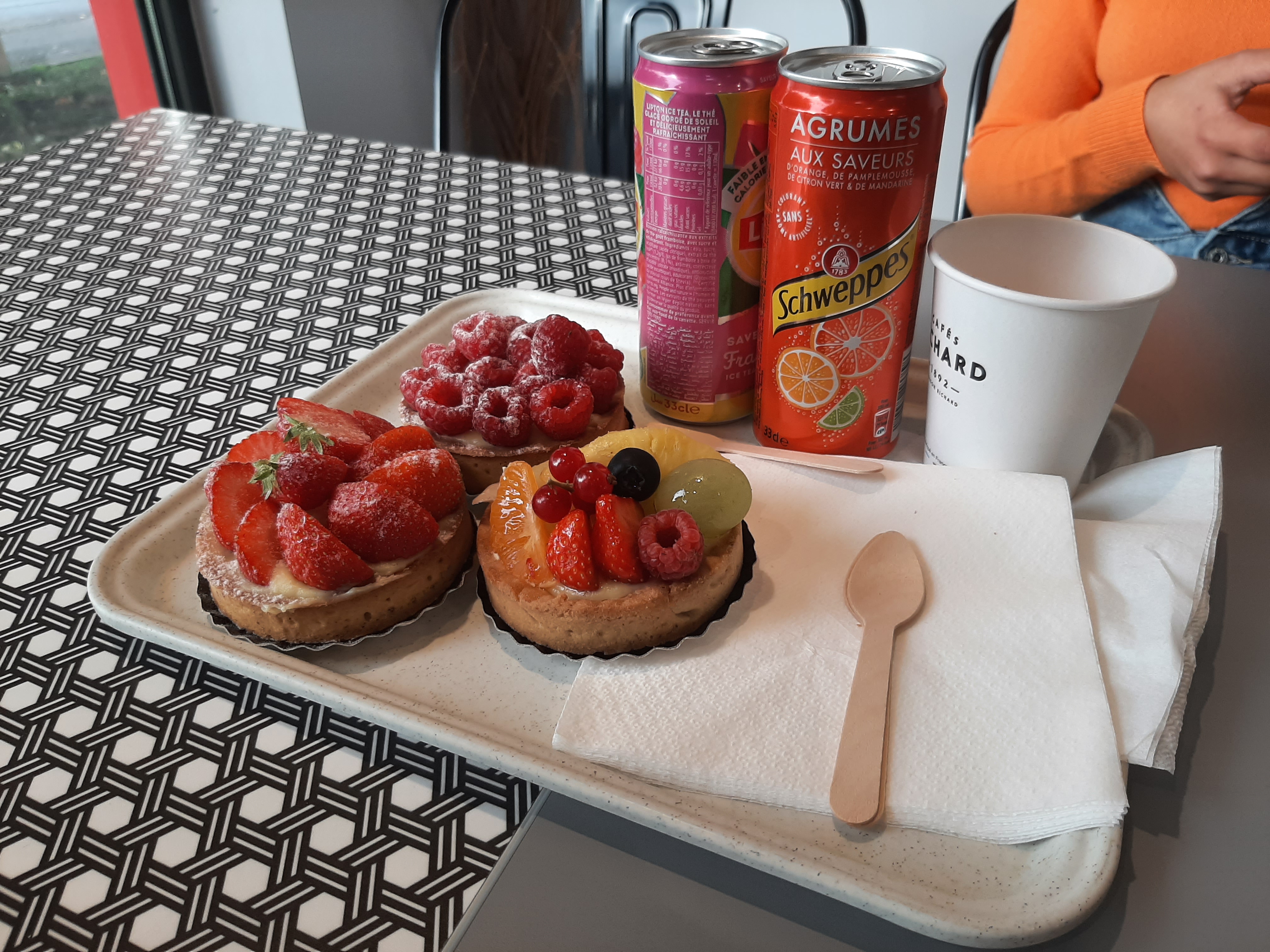 Et pourtant j y suis venue à plusieurs reprise mais aujourd’hui accueil catastrophique les flan posées à meme le plateau il a fallu demander de le mettre sur un support autre et elle soupire « du genre tu me dérange » et elle me répond « les plateaux sont propres »hallucinant !! inadmissible un tél accueil. Fort dessus de ce passage. À côté de ça l espace est agréable
