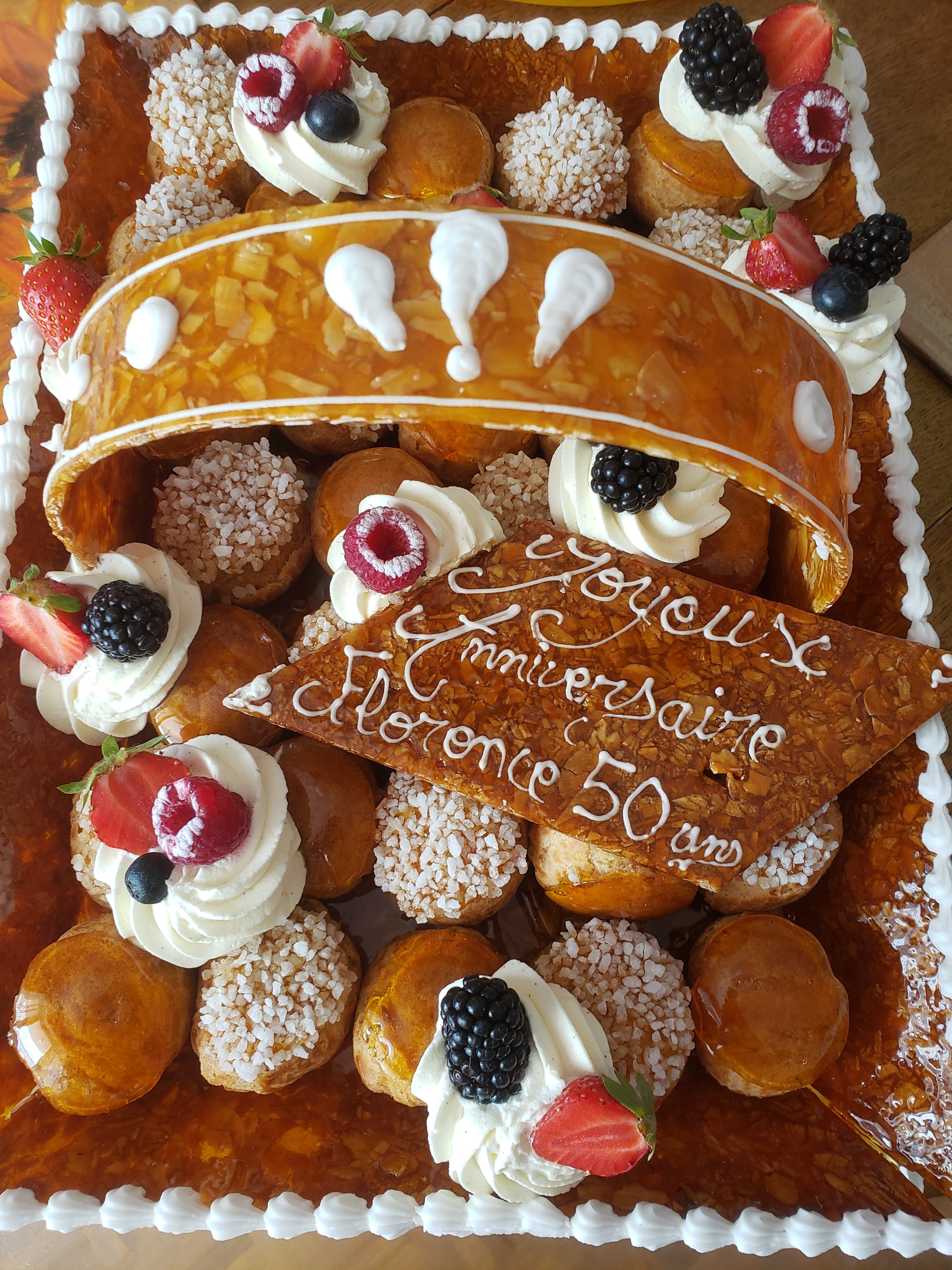 Nous avons commandé des paniers de choux pour un anniversaire de mariage. La présentation était magnifique et prenait totalement en compte le thème de notre soirée. Choux et nougatine étaient excellents et nous nous sommes régalés... Merci a toute l'équipe.