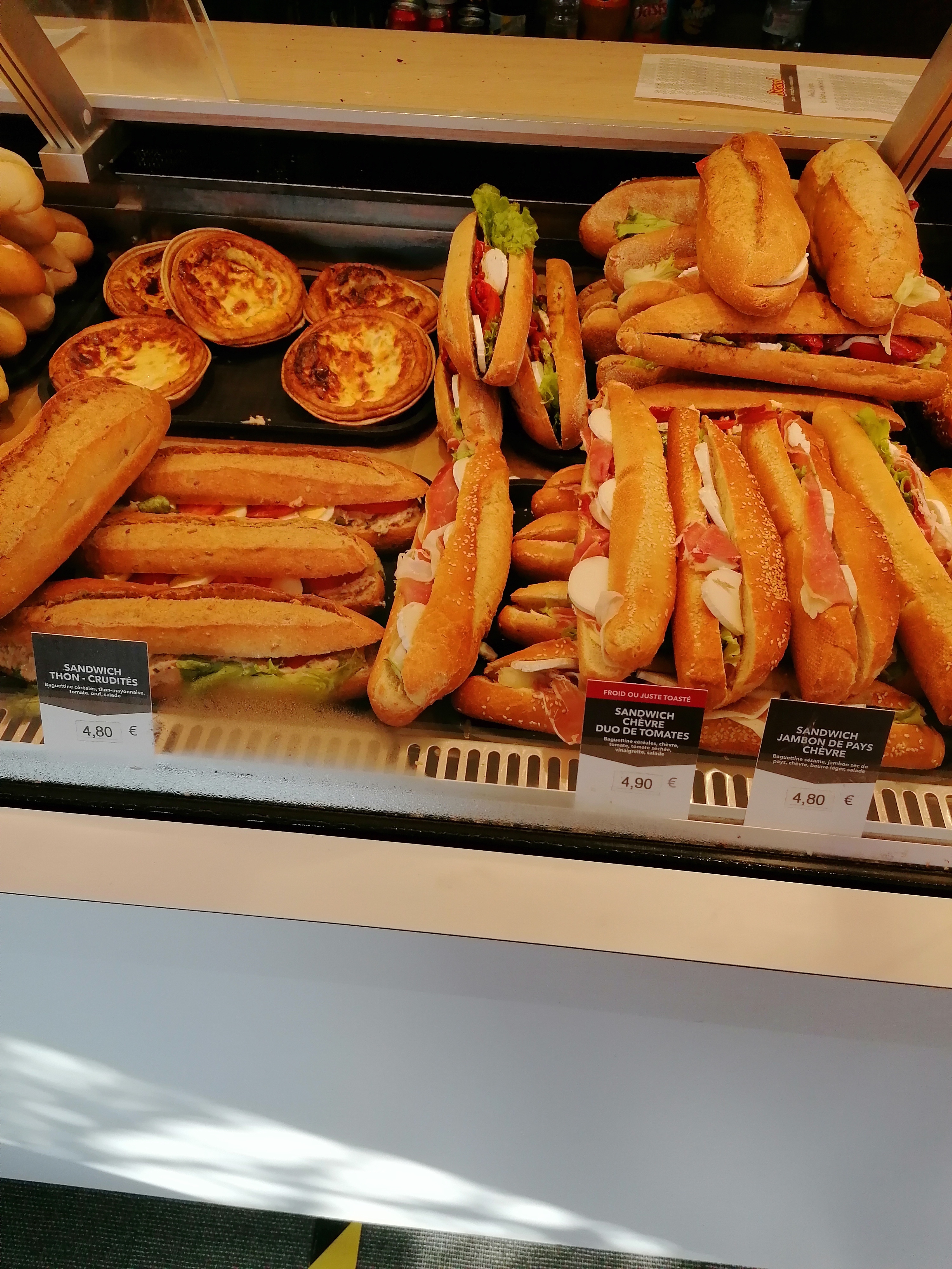 Les sandwichs sont fait avec du pain congelé, une honte ! 3 bout de jambon et deux morceaux de chèvre pour 4.90€ , vraiment déçu