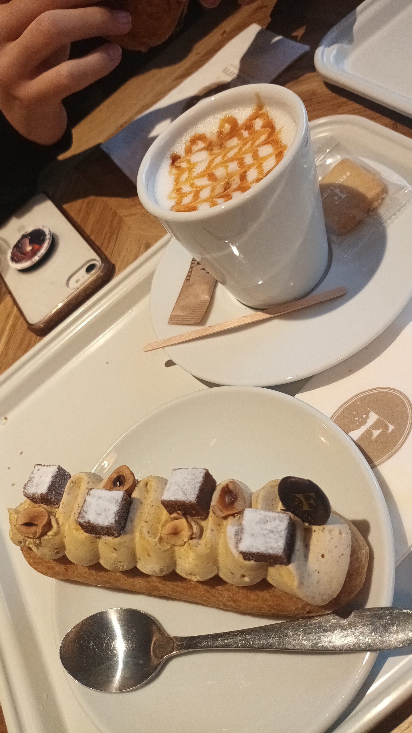 Très joli endroit, une belle décoration, des vitrines appétissantes aussi bien en salé quand sucré,en revanche bémol sur l'amabilité du personnel et du sourire vraiment pas au rendez-vous ce dimanche à part une vendeuse le reste est à revoir même chez le manager qui enguirlande ses équipes devant le client