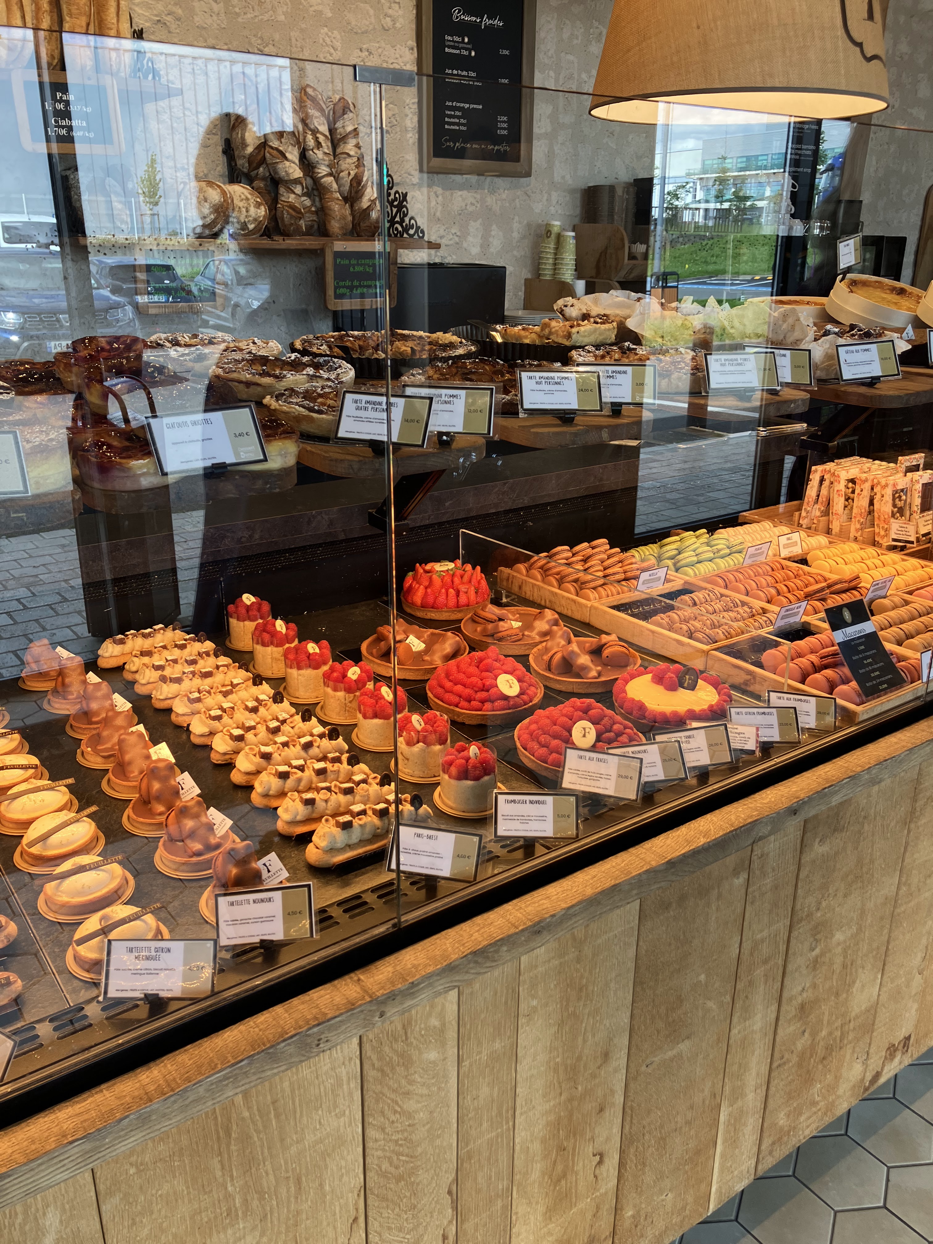 J'ai testé feuilette en professionel retraité je suis allé chez feuilette premier point le pain, les baguettes achetés ne sont pas poussées correctement, d'ou gout de pain assez massé pas le gout de bonne mie la cuisson est mieux , conclusion du pain de qualité plutôt moyenne j'ai acheté une brioche, la couleur trop pale m'as fait craindre une mauvaise pousse et comme je m'y attendait, la pâte est complètement massée, la pâte a chauffé en étant pétrie, d'ou après pousse très faible et un gout de levure très prononcé, je ne pense pas qu'il s'agit d'un travail de pro? les 2 gâteaux que j'ai goûtés m'ont également déçu, des crèmes qui peuvent être facilement congelées mais ce n'est pas ce que l(on recherche dans une pâtisserie? rien a voir avec les pâtisseries de chez les gens cités par le patron comme référence?, gâteaux trop grossiers? ja n'ai pas essayé les macarons le prix m'ayant paru trop exagéré et les colorants aussi , je n'aimes pas trop les pâtisseries de couleurs fluo?dommage que la patron au lien de faire une émission de télé ne soit pas à la fabrication c'est évidement beaucoup plus difficile et demande du professionnalisme.