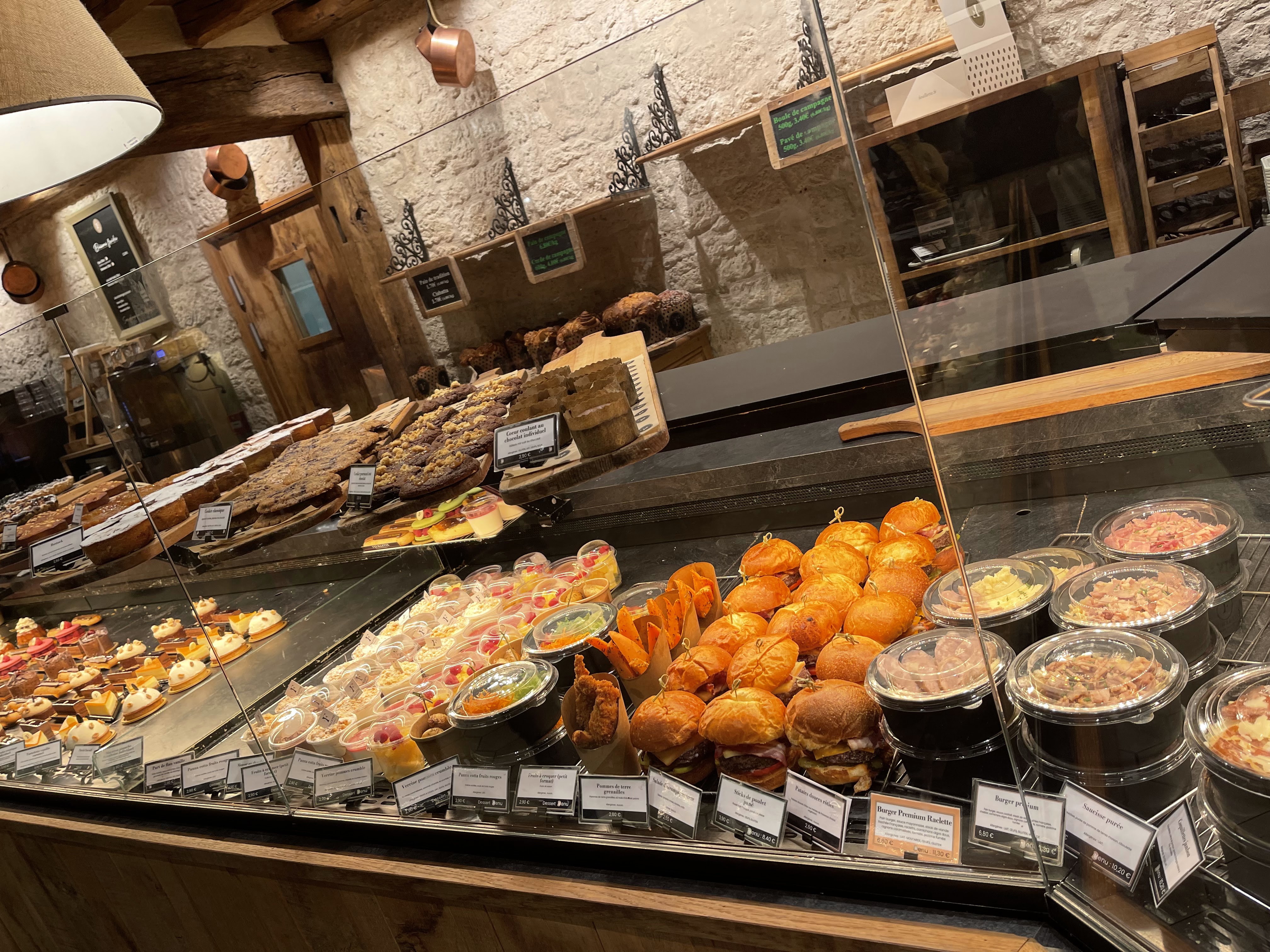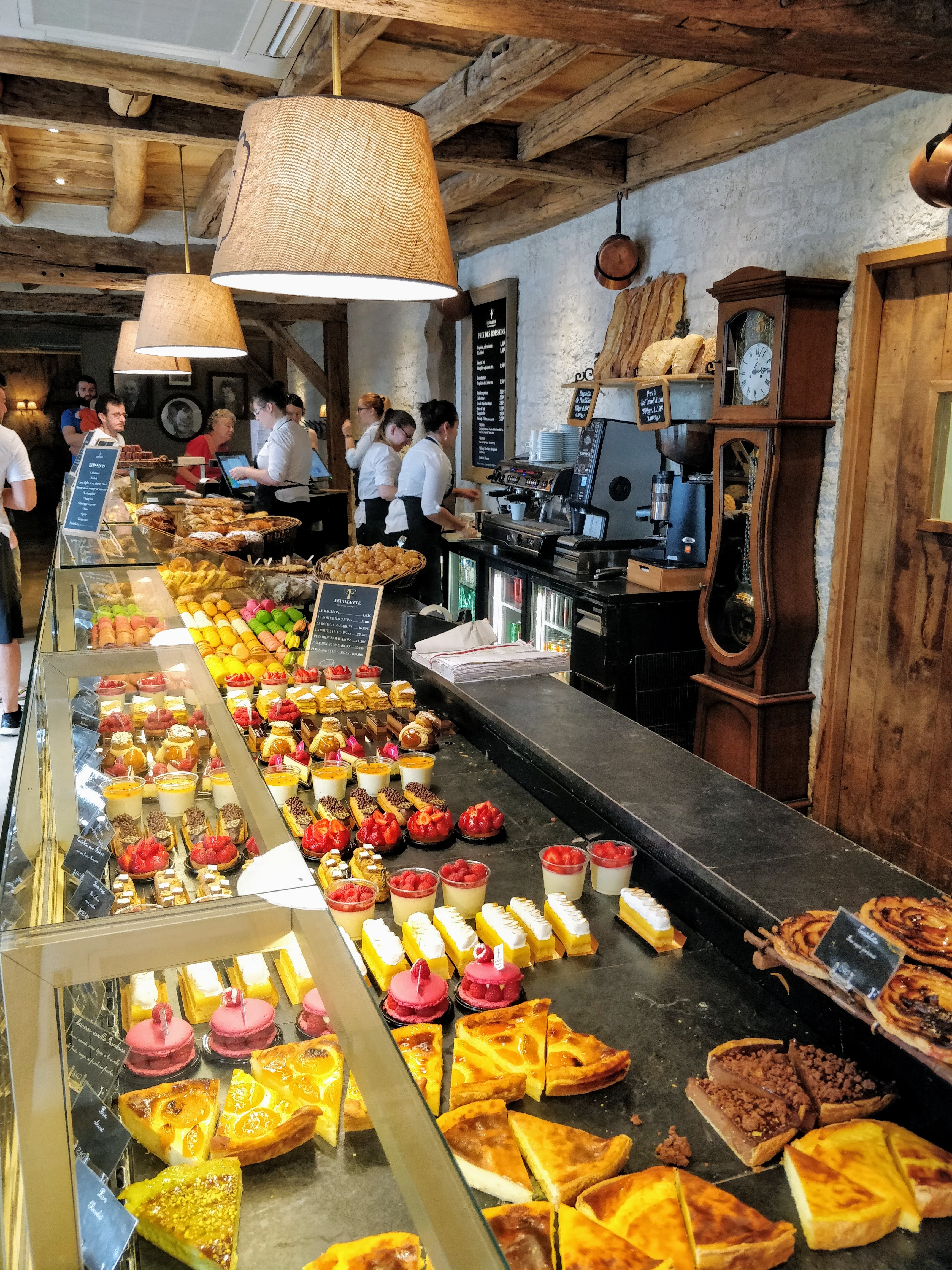 Cadre magnifique, cheminée allumée, sols qui sort de l'ordinaire (mariage de carrelage et bois, ça sort de l'ordinaire), beaucoup de très bons gâteaux et pains. J'y suis passée un jour d'affluence, et une machine était en panne ; personne pour la réparer !!! Pas facile pour le personnel qui apparemment fait plus d'heures que prévues. Sinon les vendeuses sont sympatiques et tout est bon. J'y retournerai