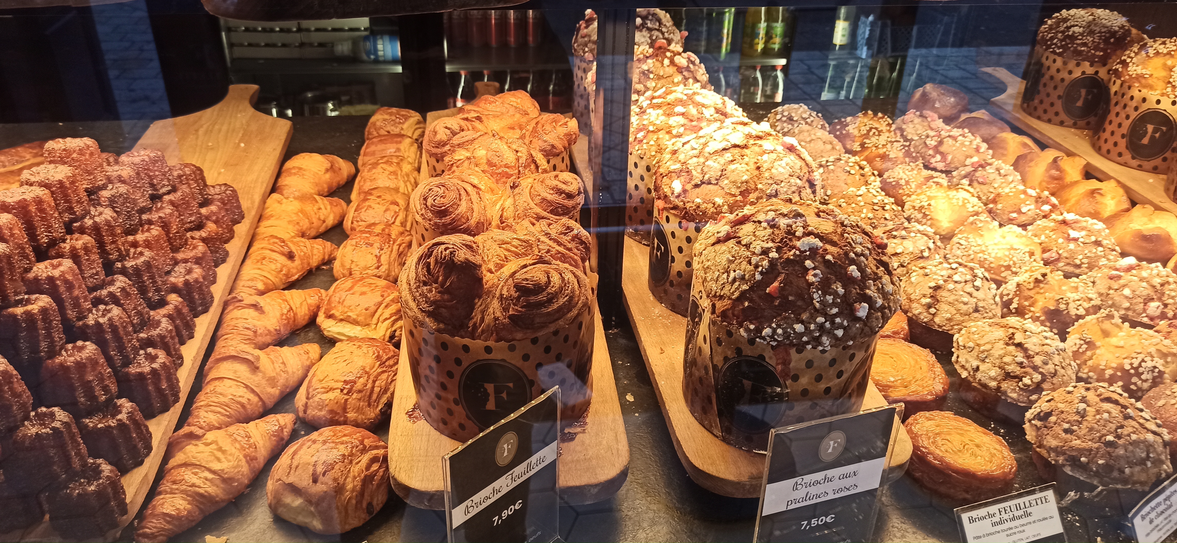 J'ai acheté un gâteau au chocolat, du pains et la brioche feuilletée. Les produits sont de grande qualité et le personnel avenant et très compétant. Je recommande ce lieu dont le décors magnifique ajoute à la qualité générale.