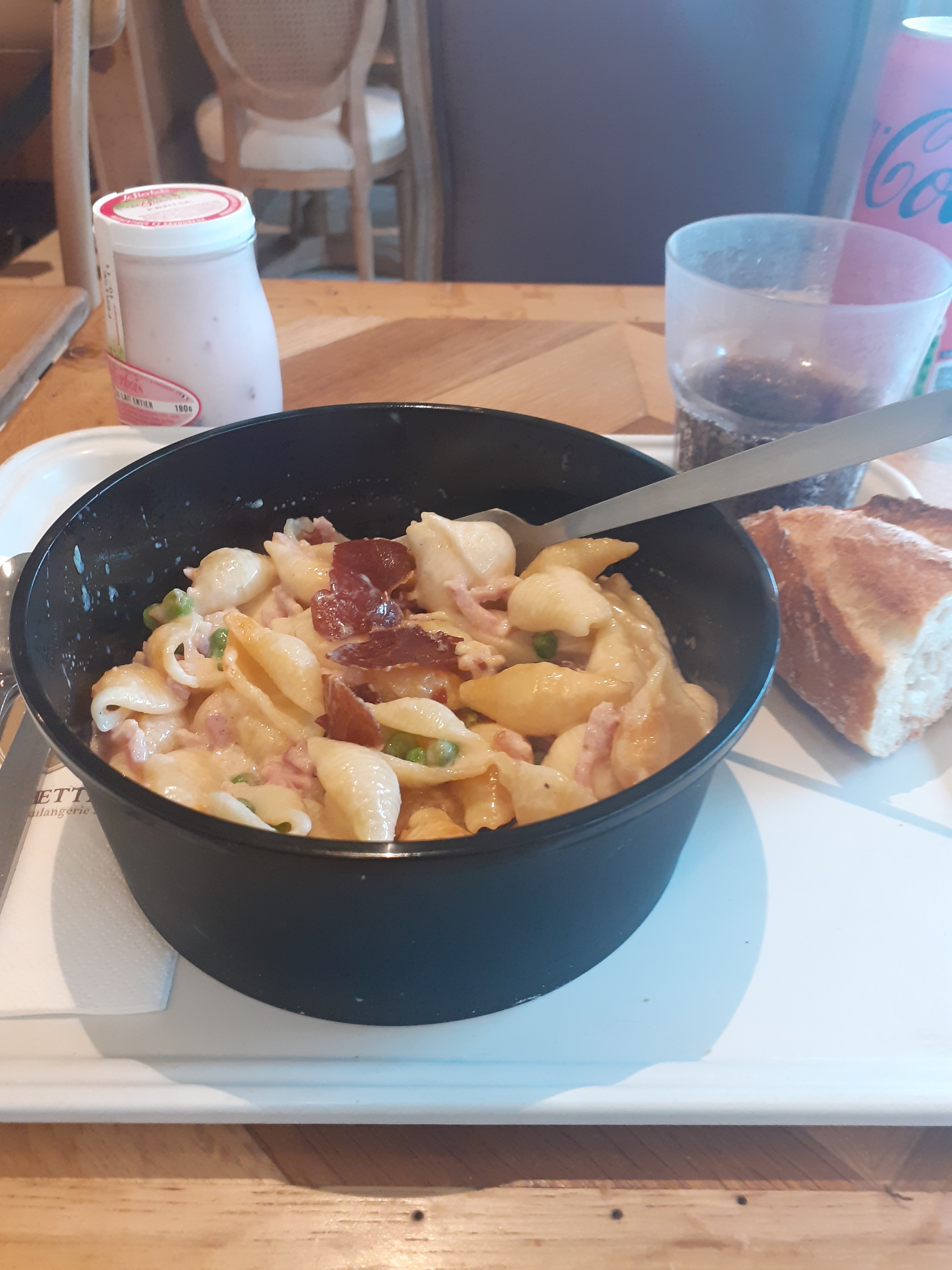 Vraiment une super adresse que je vous recommande vivement... surtout si comme nous vous êtes en route en famille pour les stations de ski et que vous en avez marre des sandwich triangles (pas besoin de faire de dessin!). La boulangerie est située à quelques minutes de la sortie de l'autoroute, et franchement, elle vaut le détour et constitue un bon break avec sa déco et son atmosphère comme à la maison! Le plus dur pour vous sera de choisir entre les nombreux plats/snacking proposés et les desserts, tous plus appétissants les uns que les autres. De notre coté nous avons choisi les pâtes carbonara pour mon mari (délicieuses et copieuses), hamburger pour mes fils (ils ont adoré) et pour moi une quiche accompagnée d'une soupe maison... en dessert, je vous recommande le flan vanille, le clafoutis à la griotte ou encore la tarte au citron. On a tellement aimé, qu'on s'y est à nouveau arrêté au retour!
