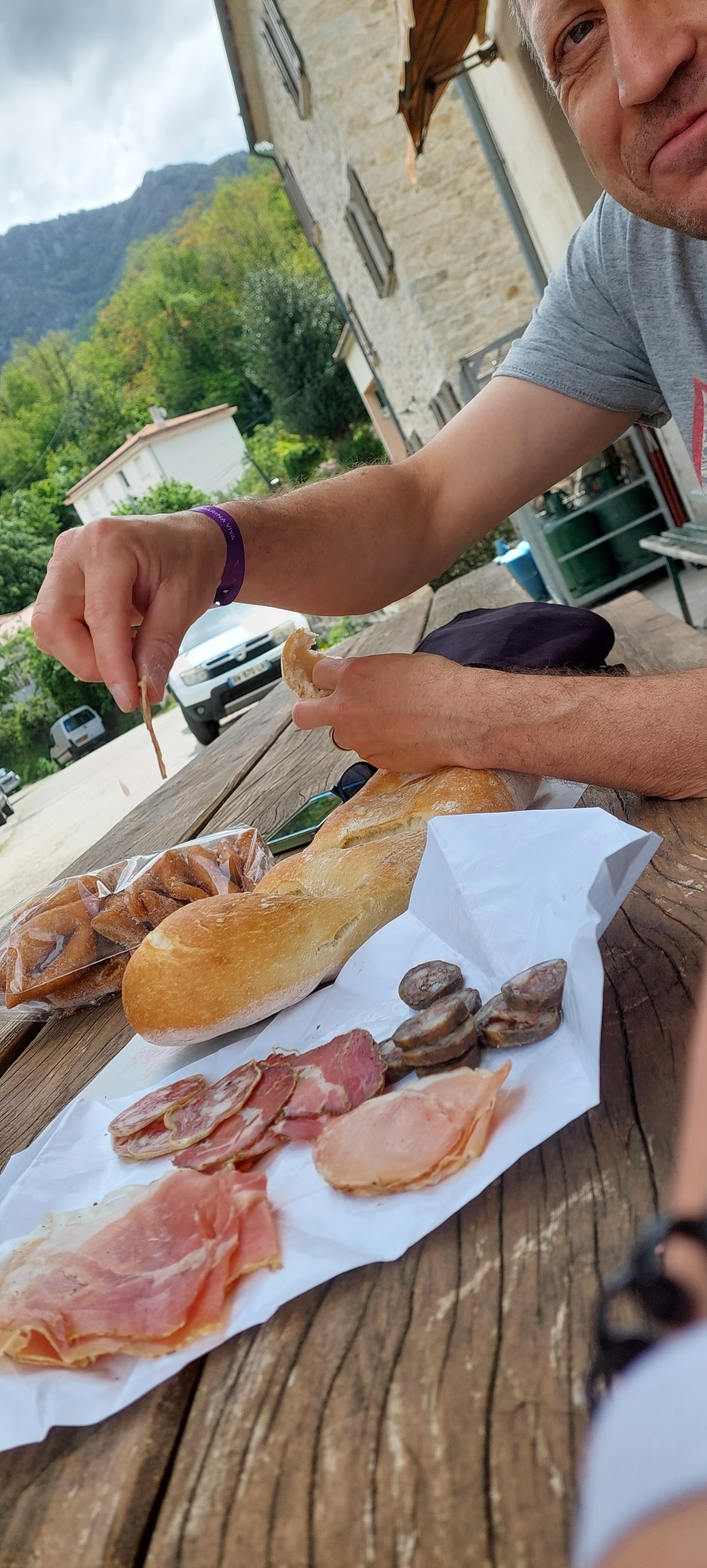 Nous nous sommes arrêtés pour le casse-croûte, nous avons goûté leurs biscuits aux amandes, quelques petits en-cas salés (pizza, feuilleté aux blettes/brocciu et saucisse) et petit flan sucré au brocciu, spécialité, tout était très bon, associé à des personnes très gentilles, n’hésitez pas à quitter la route pour vous arrêter ici 😉