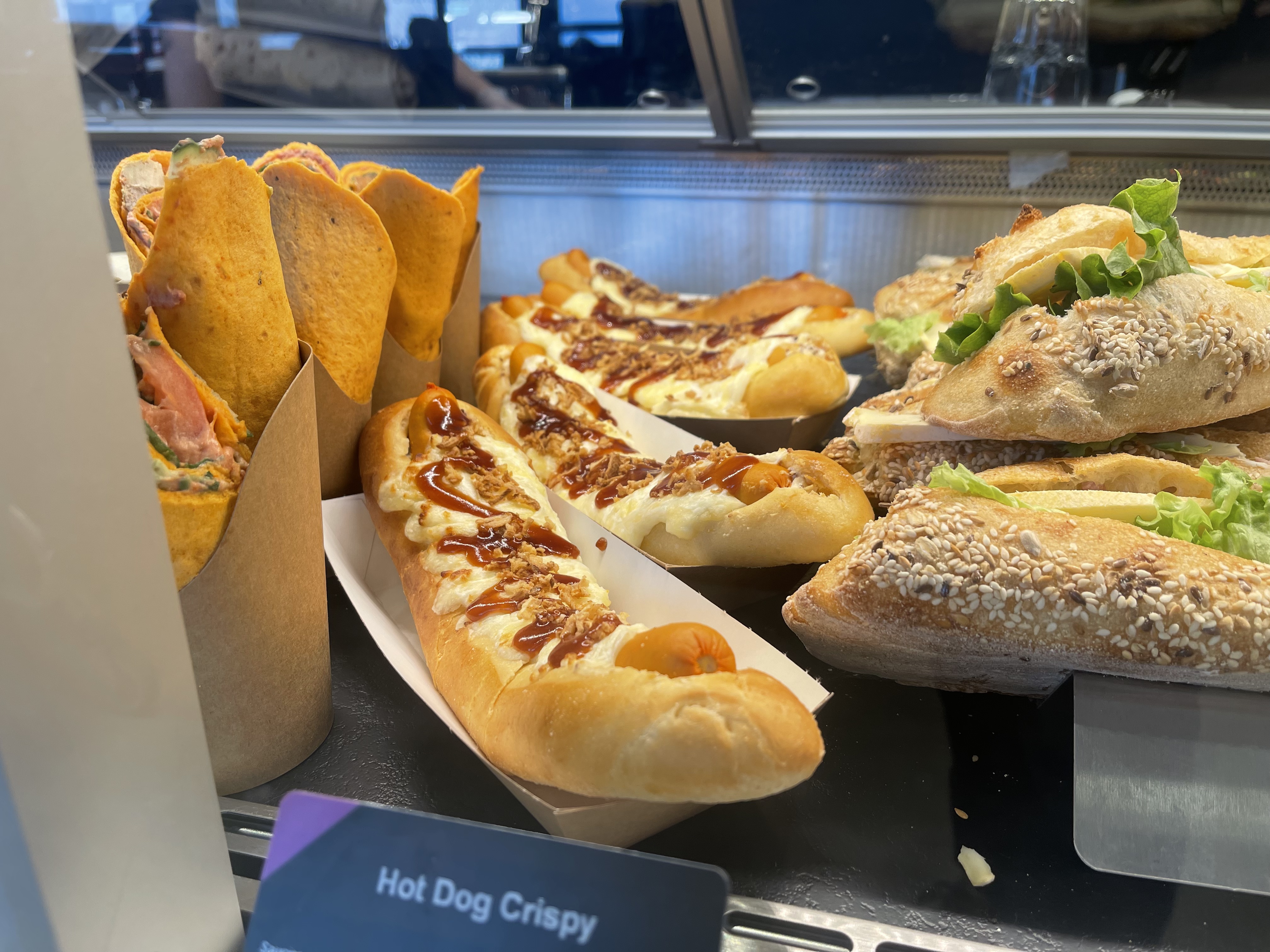 C'est appétissant en arrivant mais : - très cher pour l'emplacement (rien à voir) - désagréable de voir des employés (une jeune et une dame plus âgée) toucher avec insistance les aliments sans se laver les mains, sans protection tout en se grattant les cheveux. Sans oublier certains aliments pris dans la vitrine pour les manger derrière. Ça ne donne pas envie.