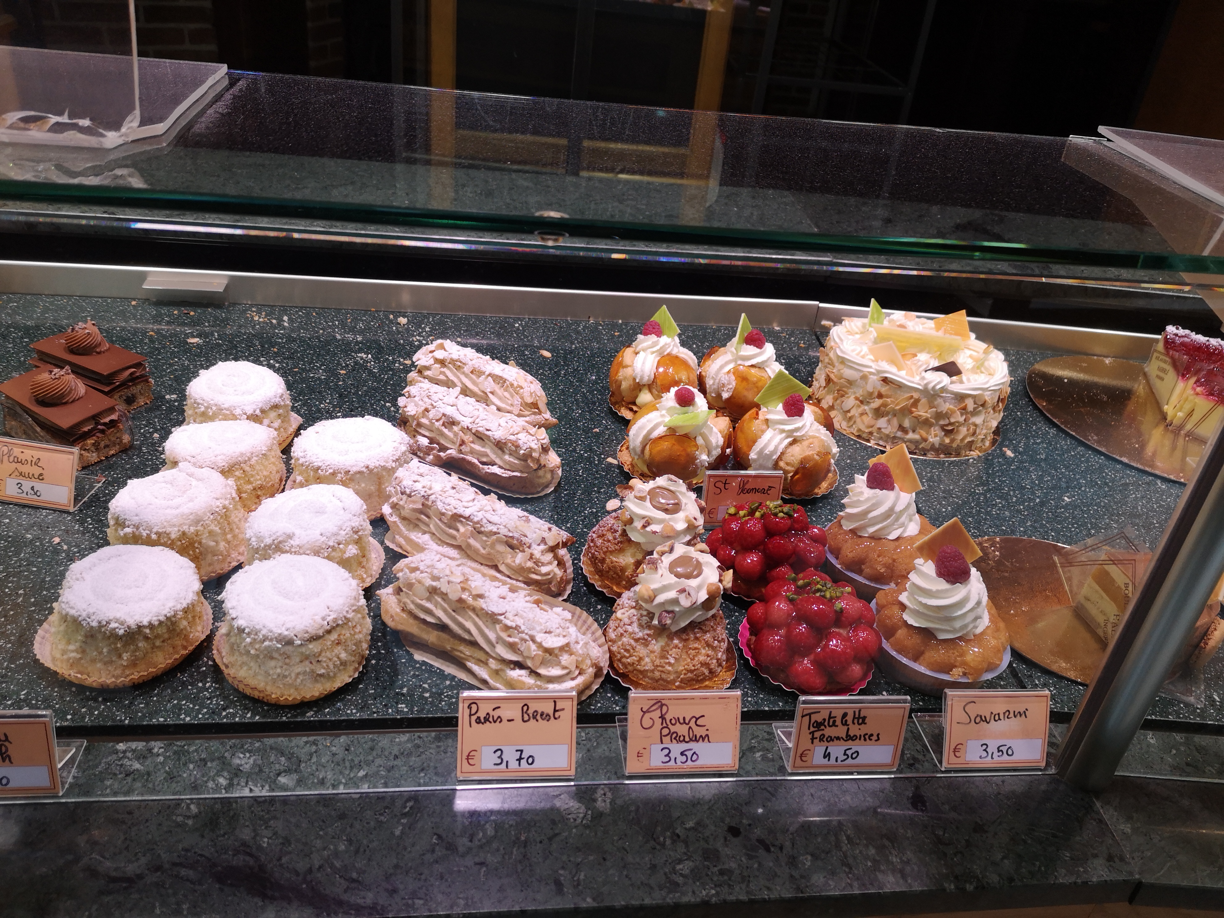 J'étais de passage et j'ai vu le personnel déposé les pâtisserie avec les mains et sans gants ou pinces pour les posées dans la vitrine