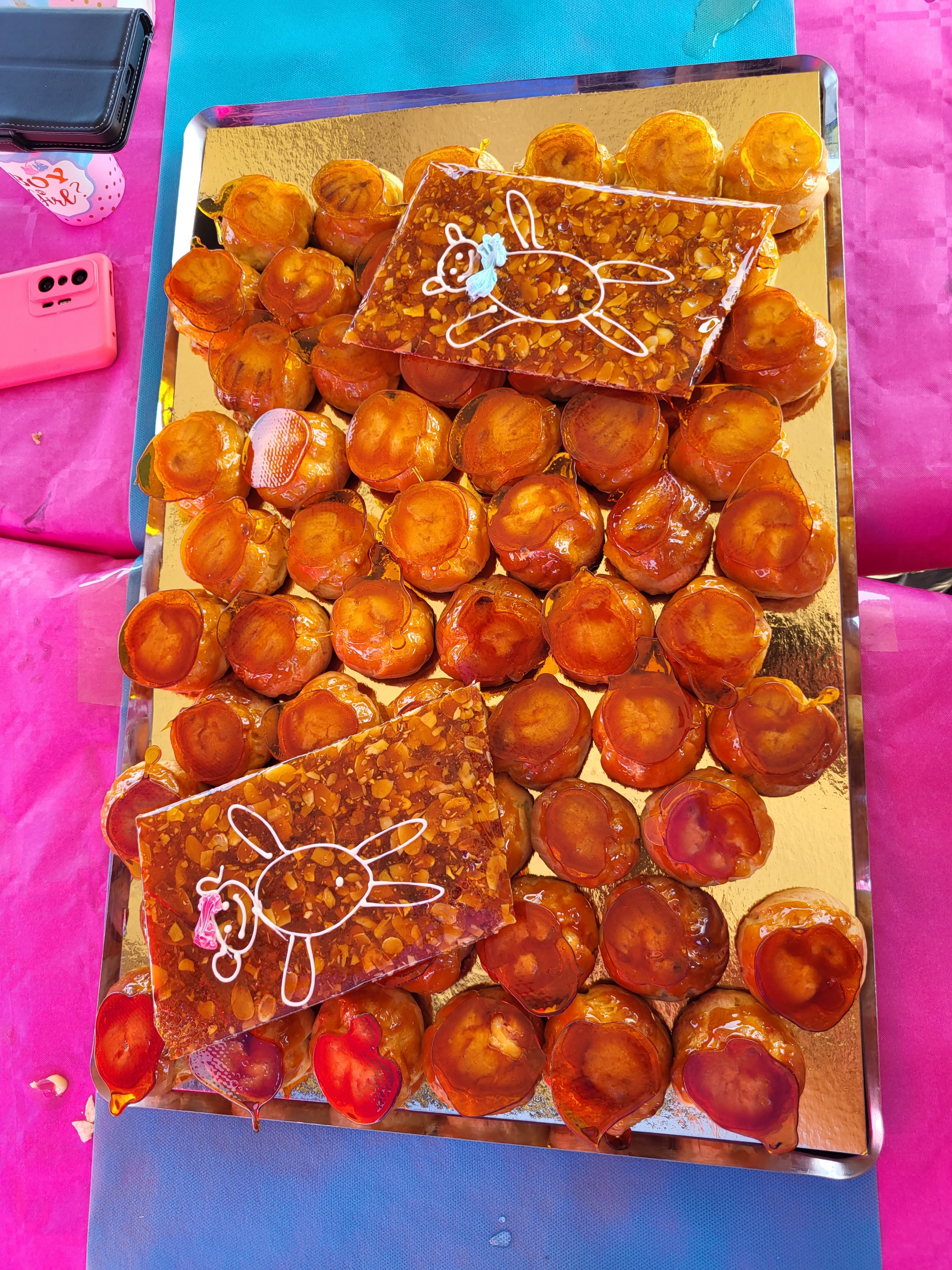 ravis de notre commande pour ce lot de croque-en-bouche vraiment délicieux ils ont fait l'unanimité auprès de nos convives merci pour la livraison qui se révélait parfaite aux vus de nos conditions ( camping)