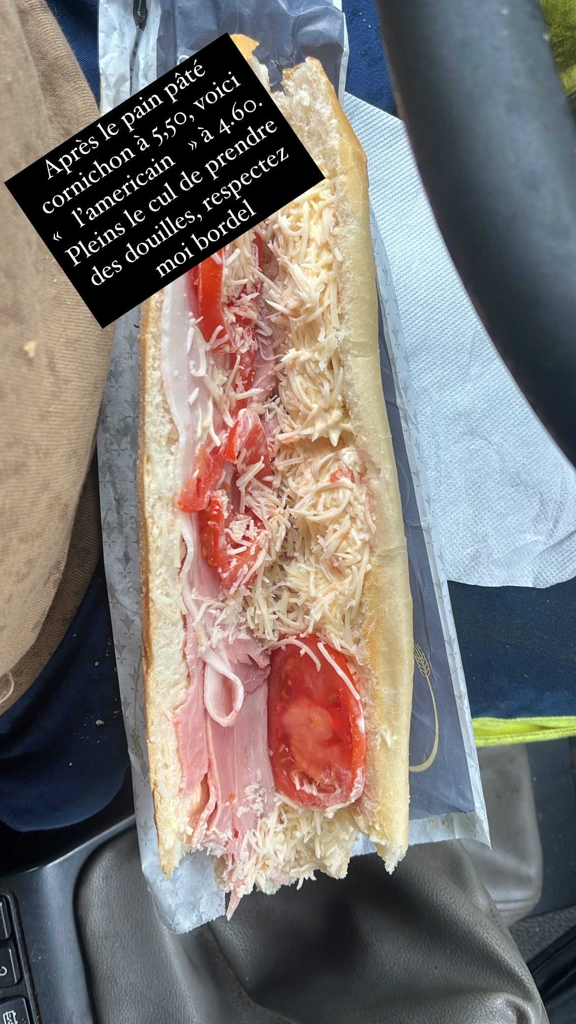 On est super bien accueillis, la vendeuse est souriante, le pain est bon. Mais franchement, 4.60 pour un « américain » sans salade, sans œuf, avec une tranche de jambon et du gruyère râpé à la place de l’emmental en tranche, c’est vraiment se moquer du client, je prend tous les midis un américain dans une boulangerie quelconque, à travers toute la Bretagne, JE N’AI JAMAIS VU ÇA ! Quand j’appelle la dame pour demander une explication, la seule réponse est « nous c’est comme ça qu’on procède ». Je fais en sorte de faire marcher les petits commerces locaux plutôt que les grandes surfaces, mais quand on me sort ça, je regrette un vrai américain de supermarché…. Je veux bien qu’il y ai l’inflation, mais faut pas prendre ses clients pour des pigeons. Quand je suis arrivé avec mes collègues pour manger, tout le monde s’est moqué de mon sandwich, c’est pour dire ! Heurement que j’avais fais de la route avant de le commencer sinon c’était retour à l’envoyeur !