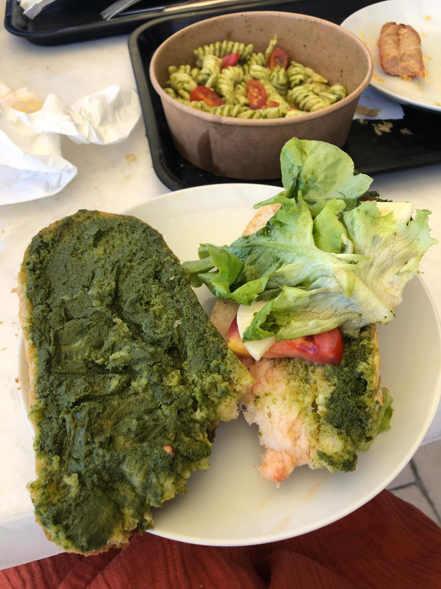 Pizza trés grasse, et si l'on aime le pesto dans l'excés vous avez trouvé le bon etablissement... le sandwich tomate/mozzarella..🤢 quand vous l'avez terminé vous ressemblez à Shrek.