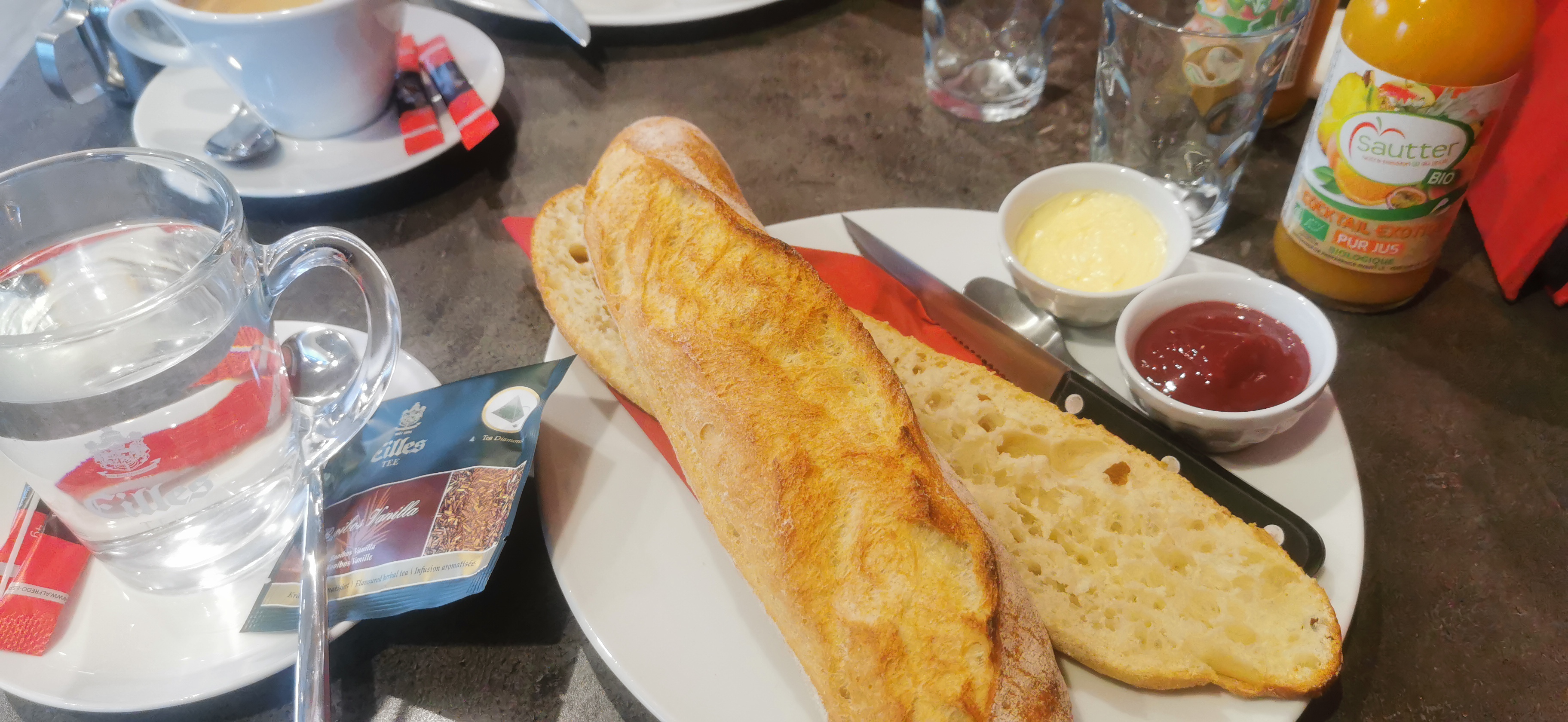 J'adore prendre le petit déjeuner et quelquefois le café, toujours de bonnes choses, et viennoiseries au top
