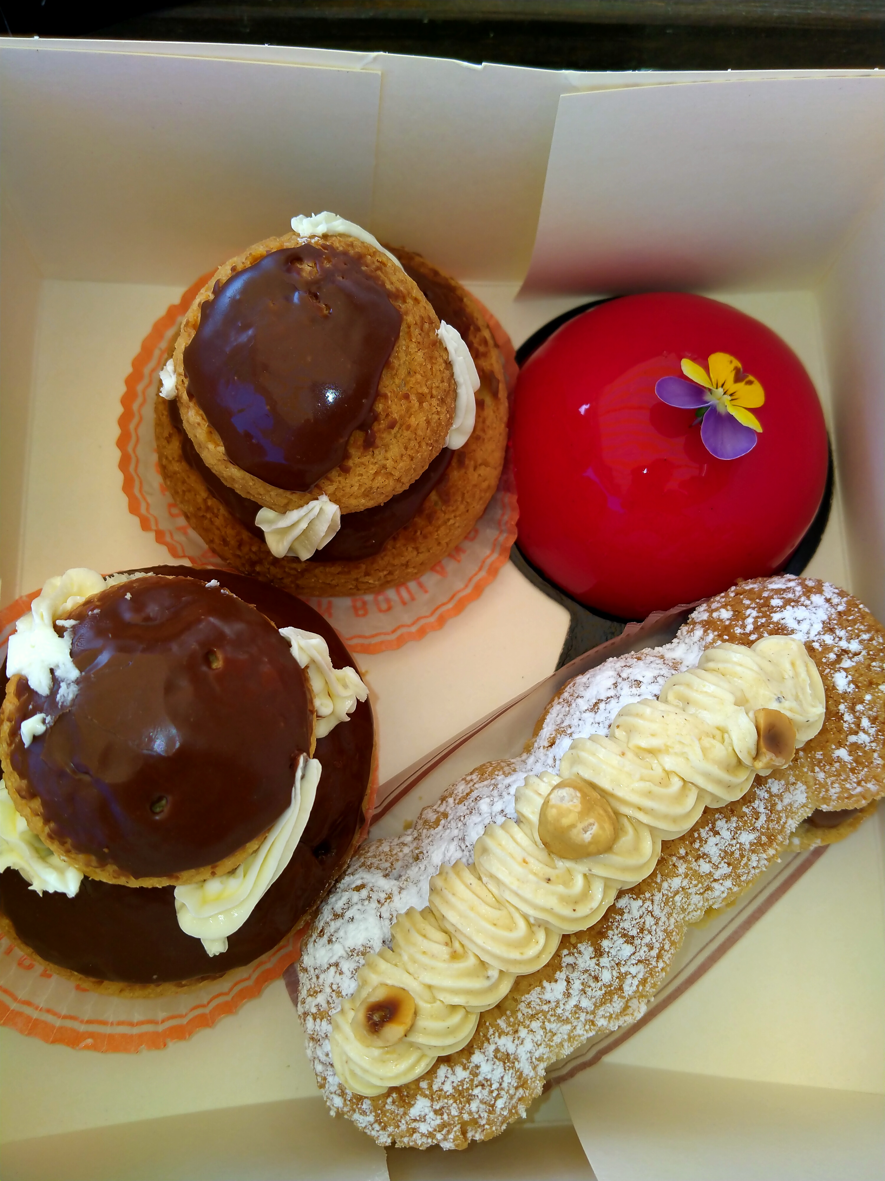 Pas beaucoup de choix de pâtisseries en semaine Prix très raisonnables mais niveau goût un peu déçu. Pâte à choux trop sèche.