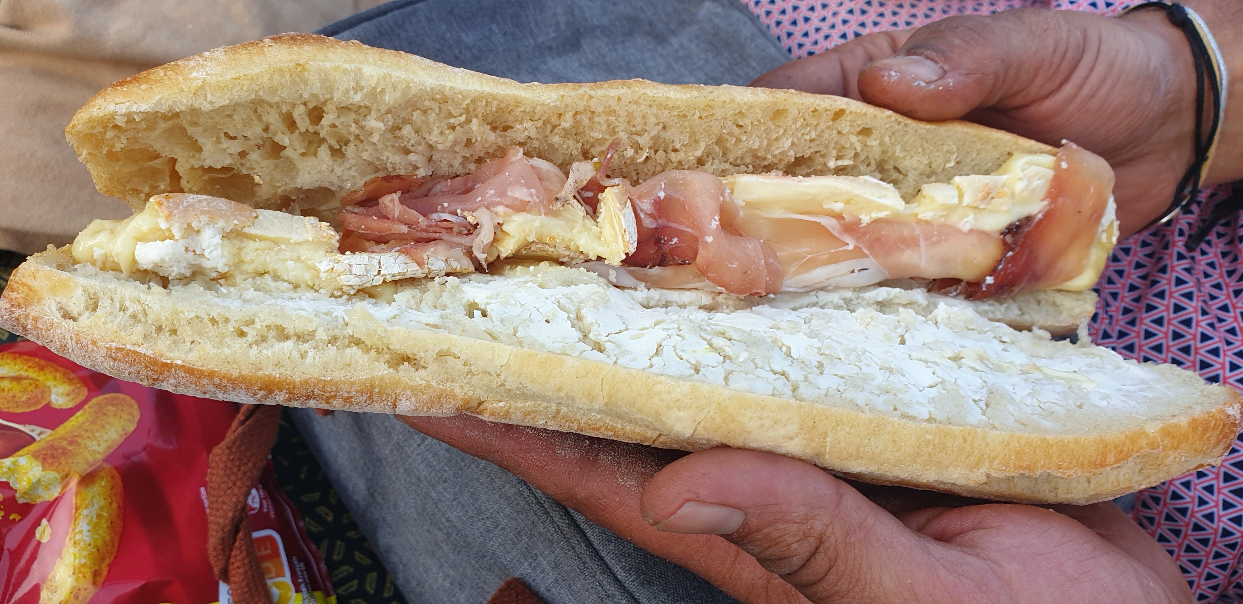 Voici leur sandwich jambon cru reblochon!!! 4,50euros 2 tranches de jambon cru et 3 tranches de reblochon heureusement qu'il y a le pain pour se caler!!! L'inflation a bon dos.