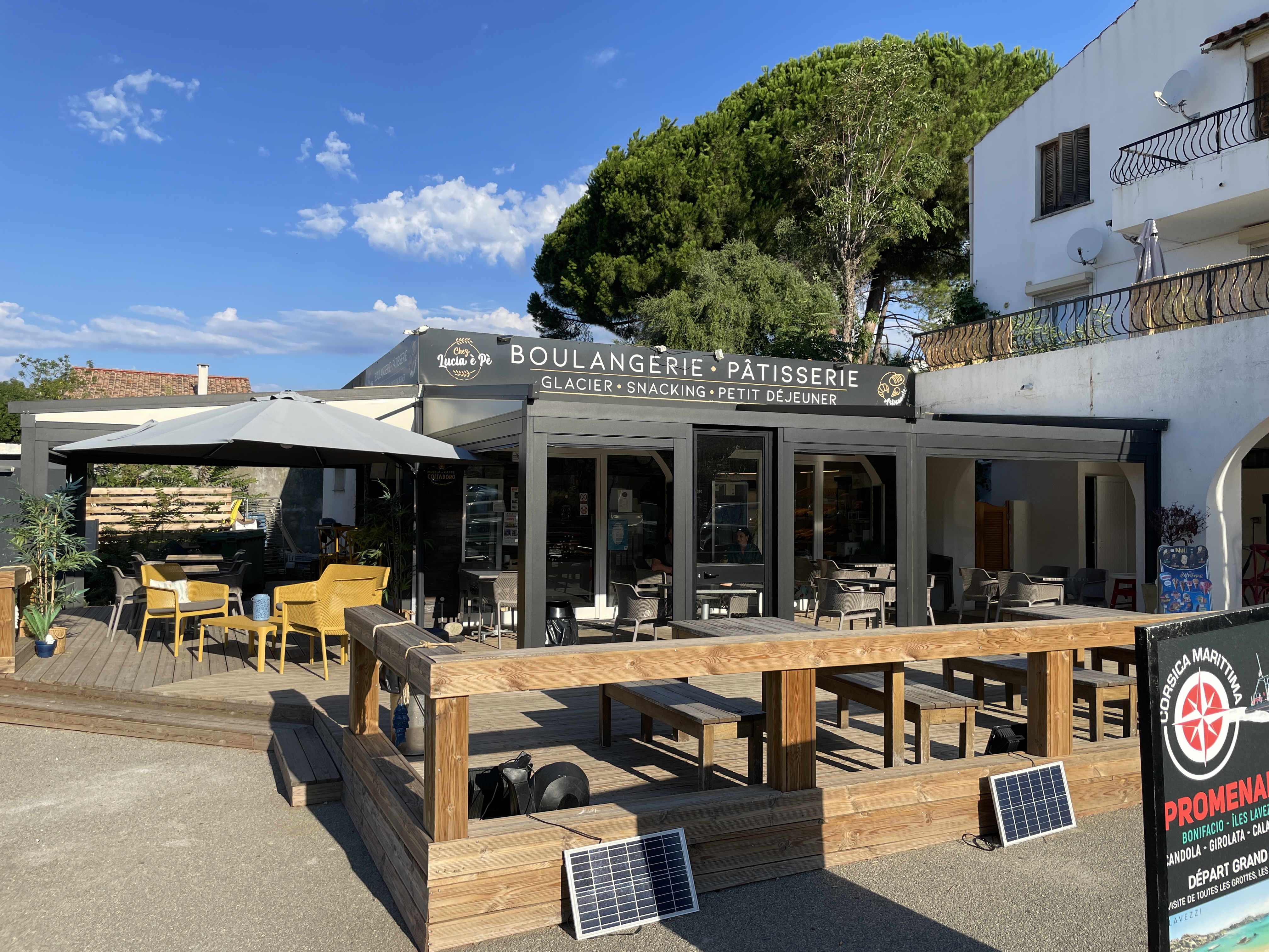 La boulangerie artisanale du village Tiuccia Baguettes croustillantes, croissants fraîchement sortis du four, excellent café et large choix de glaces et de pâtisseries Je recommande vraiment cet endroit Même si vous ne parlez pas français ce sera un mélange de franglais utile mais vous repartirez avec le sourire et de bons produits