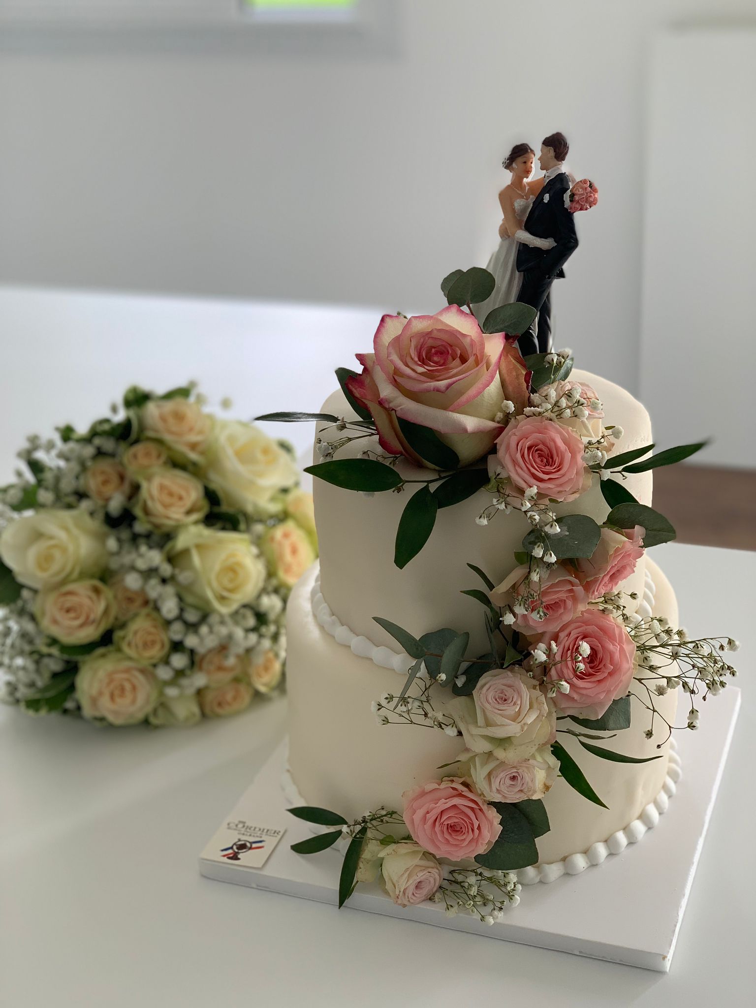 Magnifique gâteau demandé à seulement 4 jours de notre mariage civil... Tout a été realisé selon notre demande, aussi bien le décors que le goût. Un énorme MERCI M. Et Mme Cordier ainsi qu'à leur équipe, pour avoir réalisé le gâteau de nos rêves, bravo pour ce travail incroyable, tous nos convives et nous-même étions éblouis! Ashley et Sébastien Coqueret