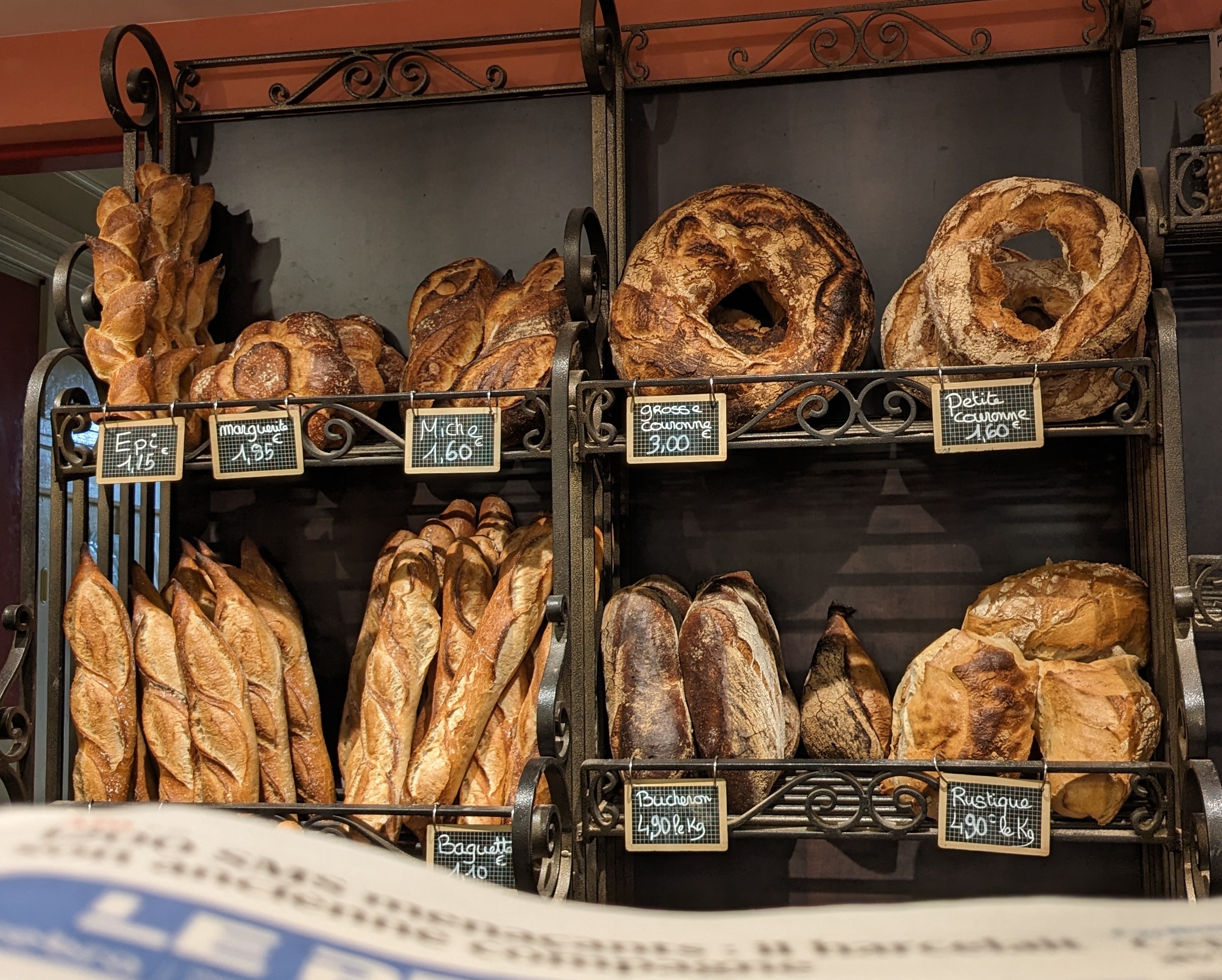 Du vrai pain qui se conserve 3-4 jours sans soucis....la couronne d'apparence bien cuite est en faite un régal... Idem pour les baguettes, à tel point que nous avons commandé pour repartir, histoire de prolonger les vacances...