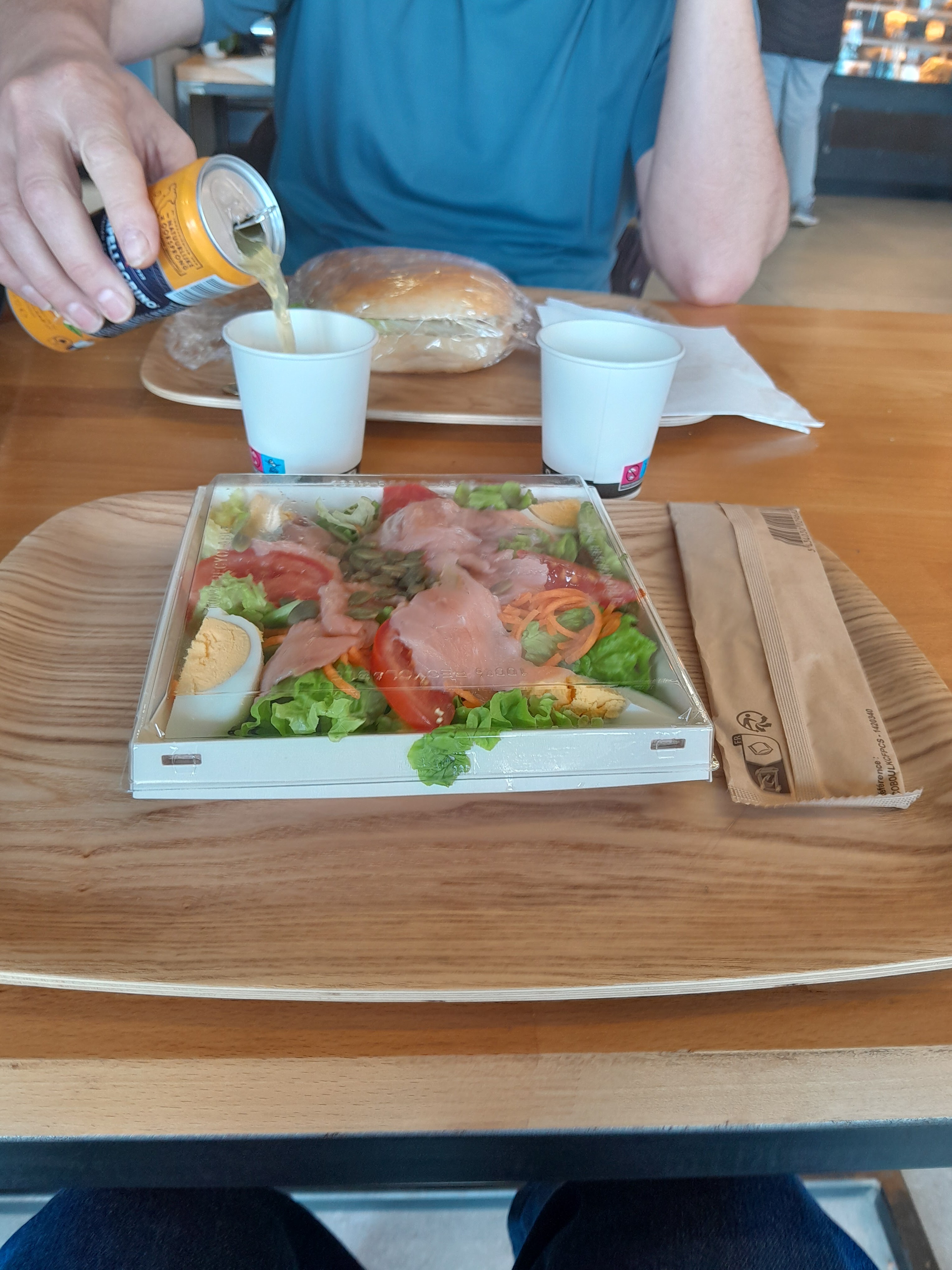 Produits variés, desserts et sandwichs de qualité du chef ,tables int. et ext.disponibles, propreté des lieux et en ce matin de 1ere heure( et pas le premier) pas le sourire de Mme (..dommage que ce lieu sympa manque de jovialité a l ouverture sinon je recommande car accès idéal et aisé pour un brake ou un dejeuner dans des prix corrects