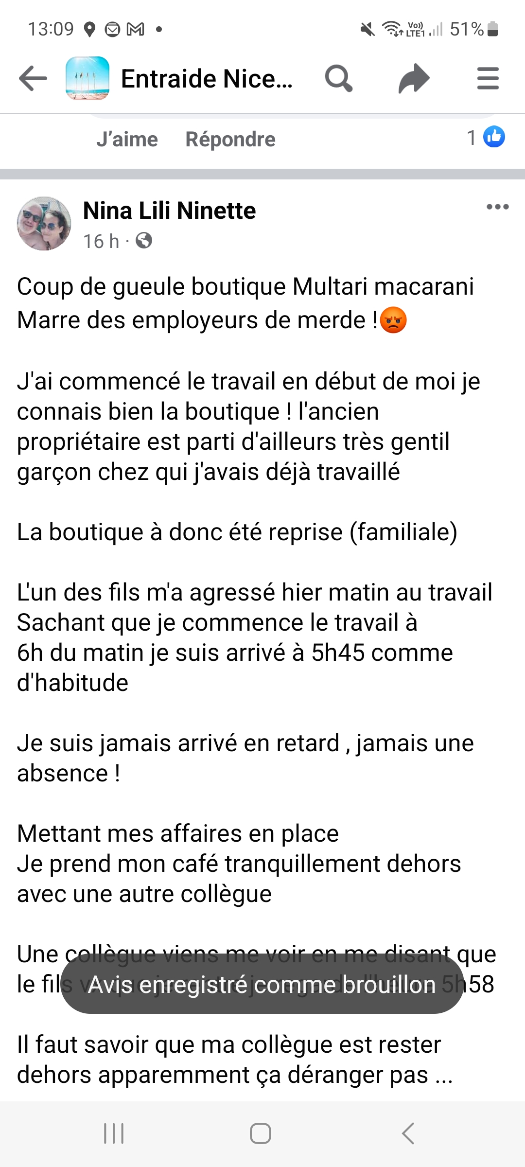 Ce soir, je demande du pain rassis (sec, dur) donc invendable à un client pour ma soupe de poissons. Le jeune vendeur me l'a vendu 90cts ! Alors qu'à deux reprises on m'a offert des baguettes avant la fermeture...le jeune m'a fait comprendre qu'il était filmé et donc stressé par ce flicage. Merci Multari ?☹😟😰
