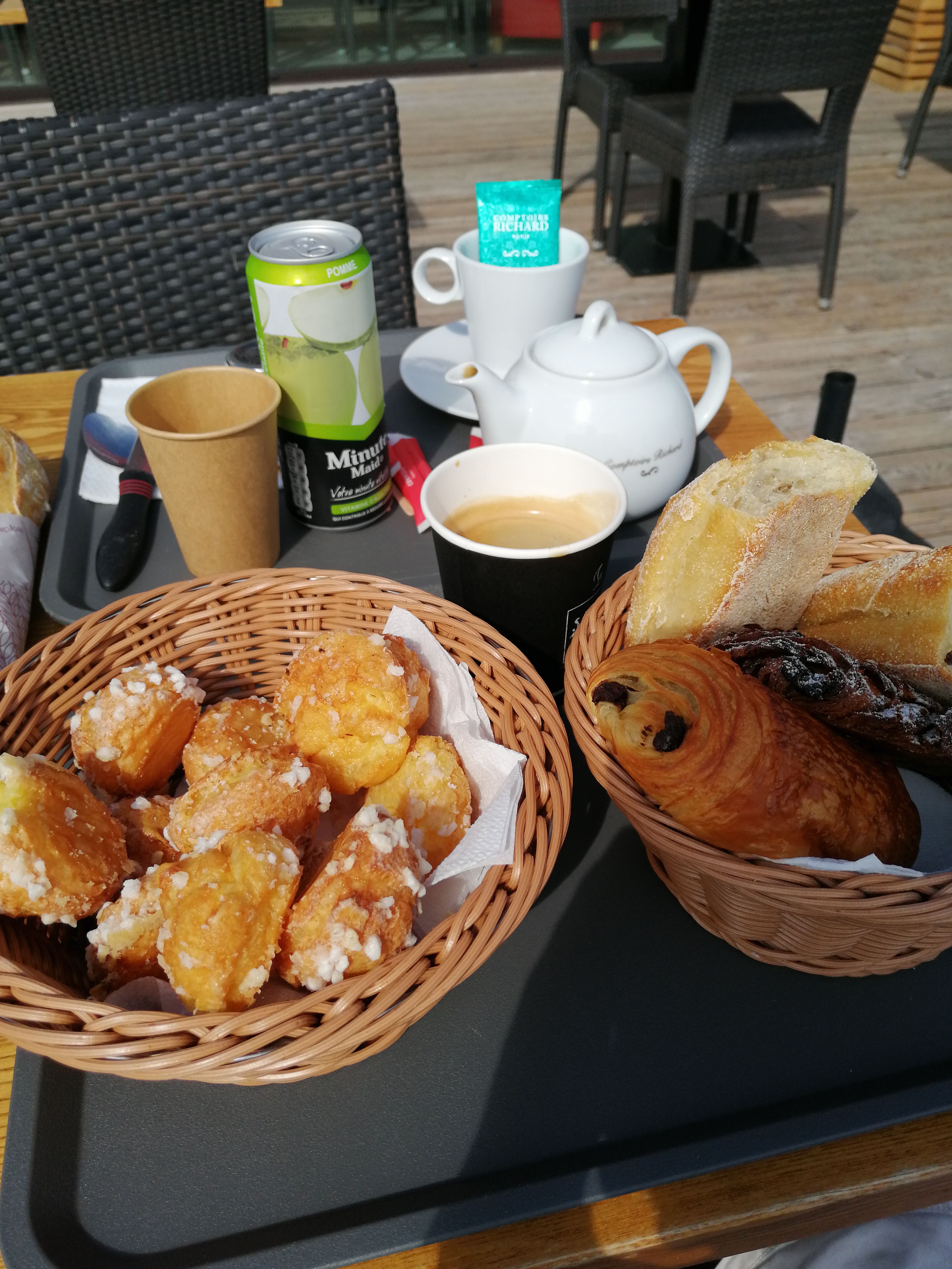 Petite pause 16h00 agréable en terrasse. Les viennoiseries sont bonnes et le chocolat chaud délicieux 😋. Personnel très sympa