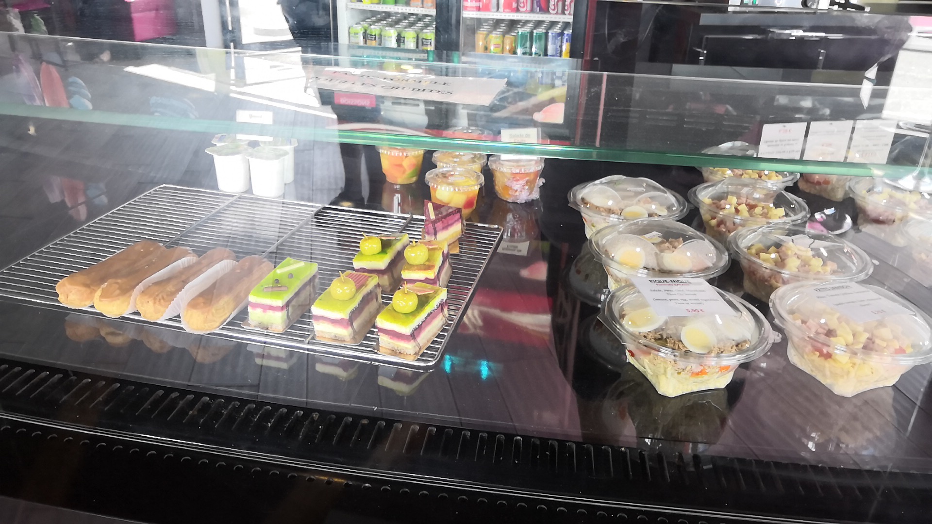 Gâteaux délicieux... Choix de plats , salades ou sandwichs ... Toujours une pause agréable...