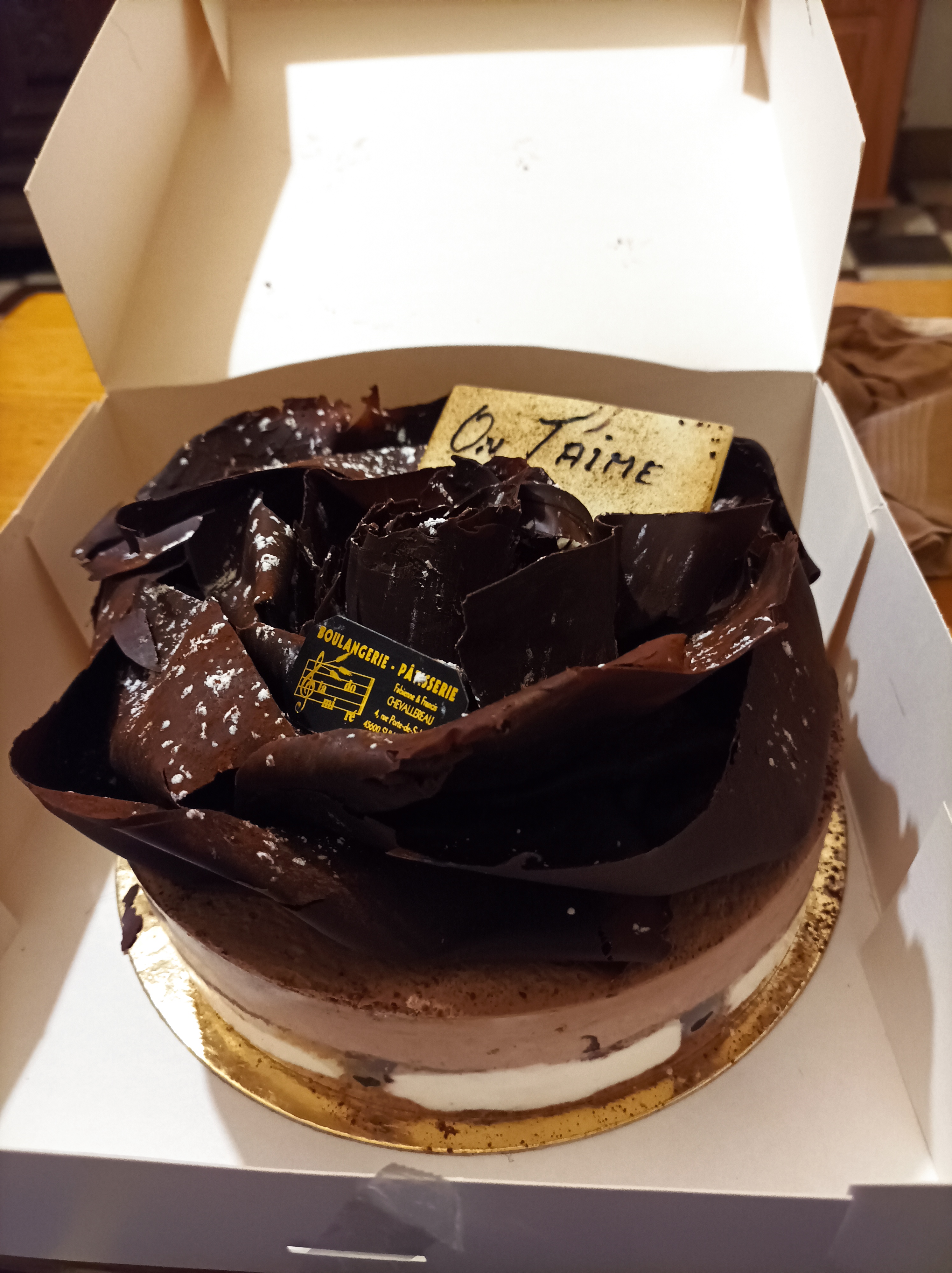 Le renouveau n'a pas que du bon! Forêt noire avec cerise imbibée d'alcool, a en faire tourner la tête pour 3/4 cerises manger! L'année dernière même gâteau bien plus beau, moins rond, moins linéaire, moins simple/sobre et bien moins alcoolisé ( voir photos )! ( J'ai l'impression qu'ils ont tous la même tête au vu de la vitrine, rond sans âme, sans petit plus, trop simple pour une boulangerie qui avant faisait de très beaux et bon gâteaux! ) Faudrait penser aux enfants qui peuvent manger les gâteaux.... Même mon mari en a été déçu, lui qui adore se gâteau! La tradition elle aussi ne casse pas des briques non plus... Plutôt molle que croustillante, ce qu'on recherche dans une bonne tradition. Niveau goût, du pain quoi... Déçu du renouveau de cette boulangerie.... ( Achat forêt noire février 2024 ). Listing photos : - Baptême décembre 2022 - forêt noire février 2023 - forêt noire février 2024