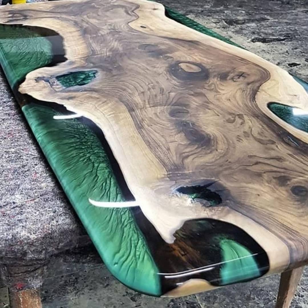 Table basse bois massif résine d'époxy