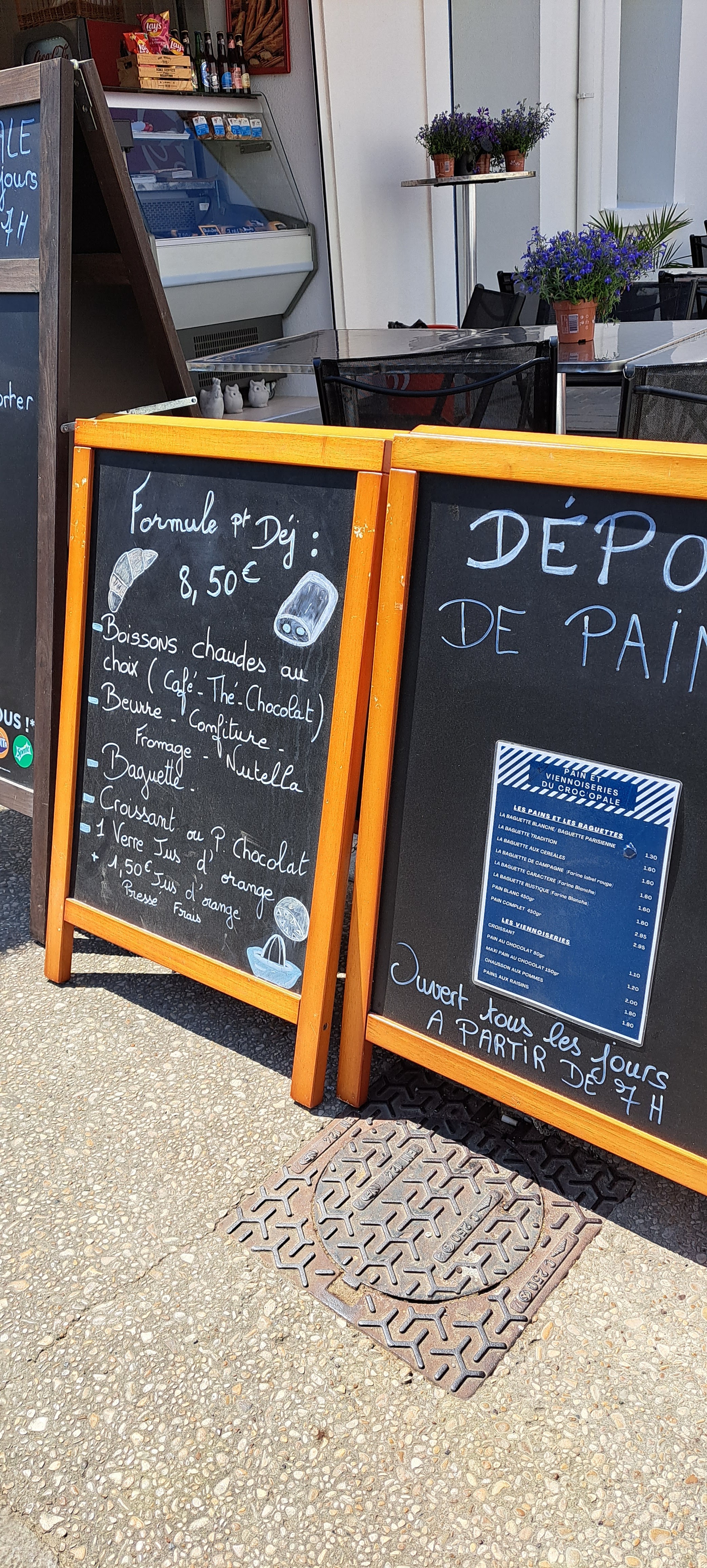 Difficile de pouvoir boire un jus ou déjeuner quand on se lève tôt dans le coin. Heureusement il y a notre oasis a la fraîche en cette fin avril. Petit déjeuner complet pour 8,50€. La patronne et sa collègue sont très sympa.