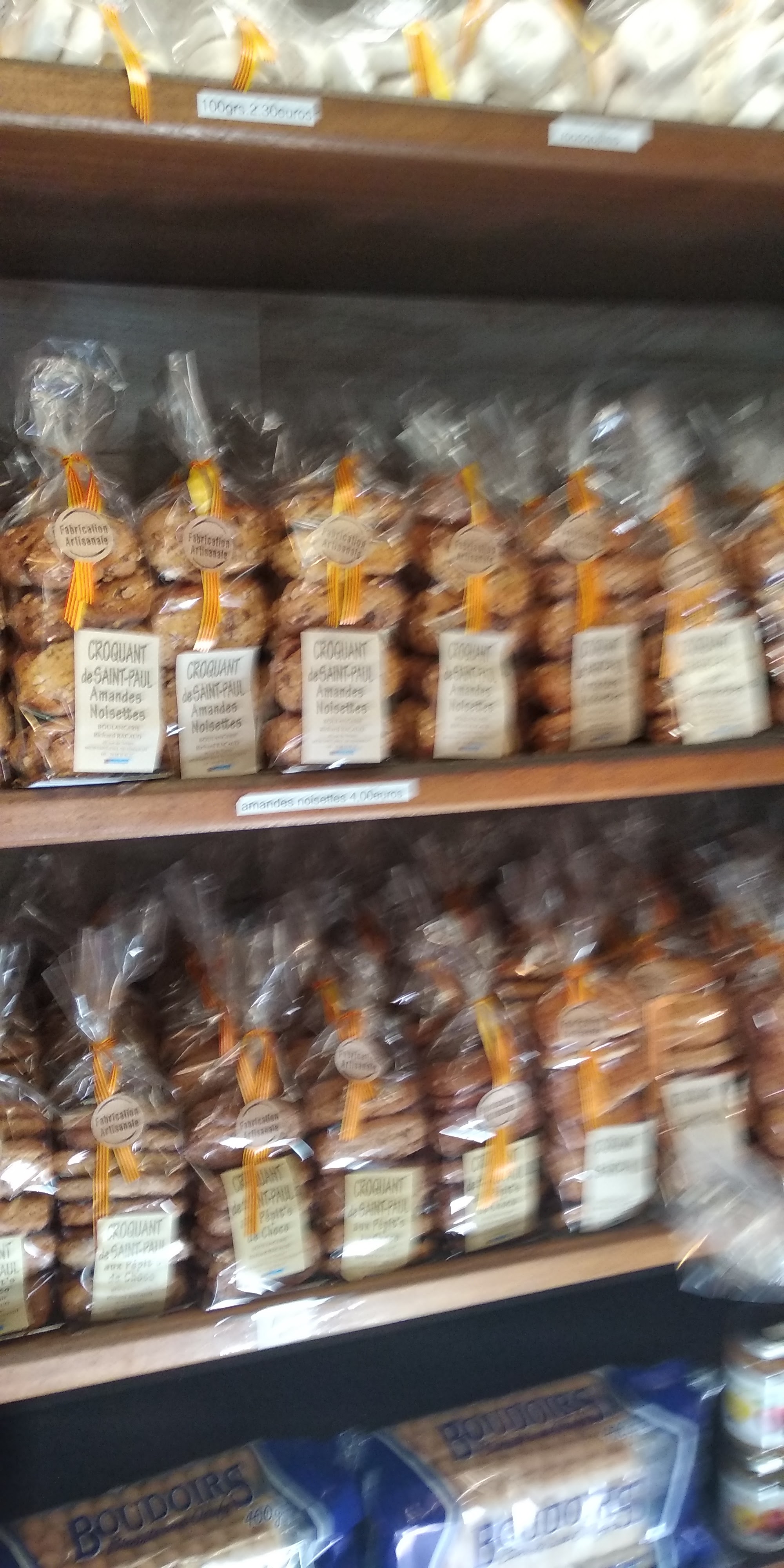 Croquants de Saint Paul, bons mais j'ai trouvé que c'était cher 4€ le sachet de 200gr... Ne prends pas la carte bleue mais accepte les chèques.