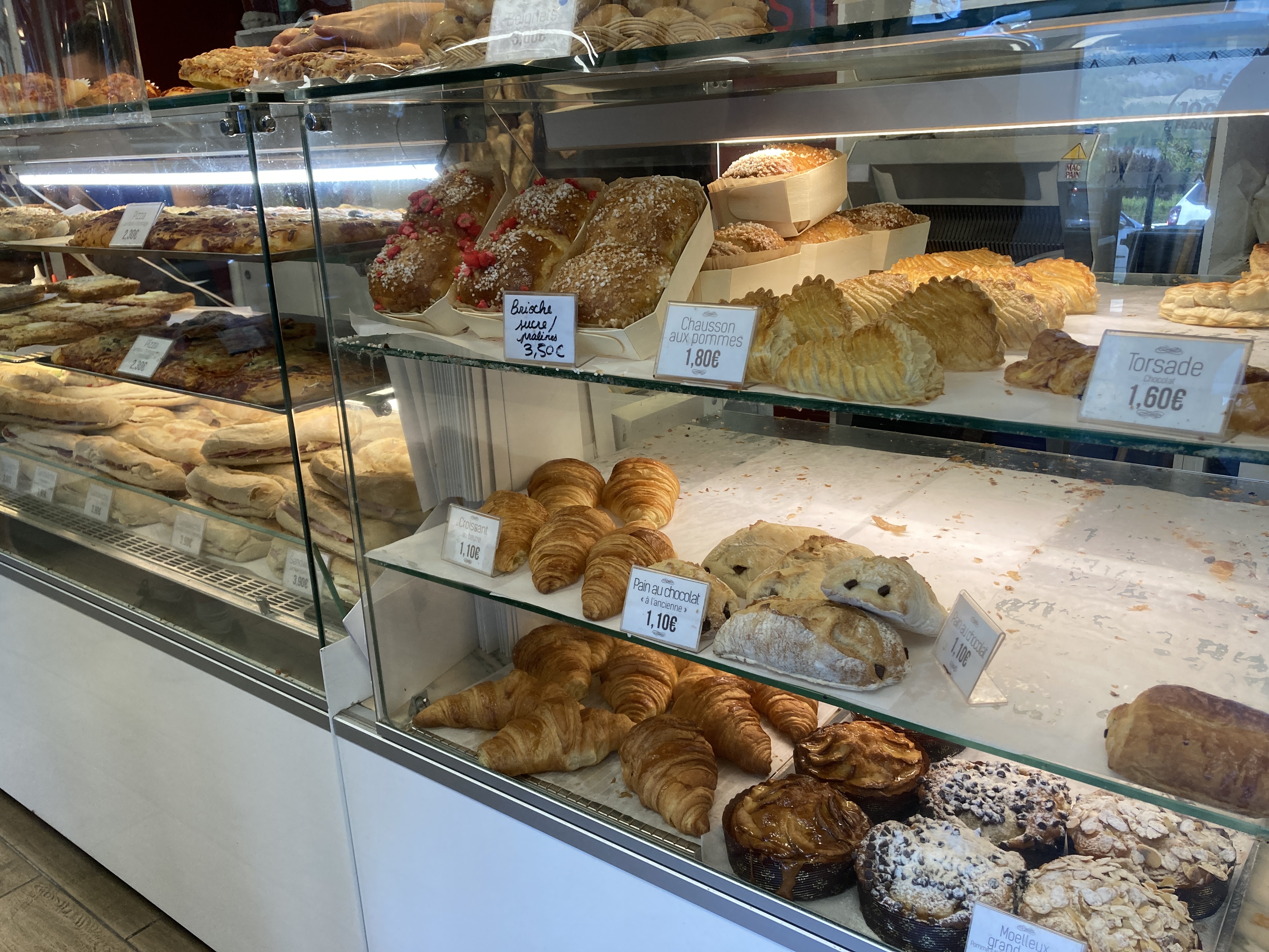 Après un passage dans un village vacances ou nous avons apprécié le matin au petit déjeuner un pain aux céréales. Au moment de repartir de Savine le lac nous nous sommes arrêtés devant cette boulangerie pâtisserie qui fournissait le village et nous avons emporté différents pains et pâtisseries délicieux et notamment des pains aux chocolats à l'ancienne et un pain noir un régal si vous passez devant arrêtez vous