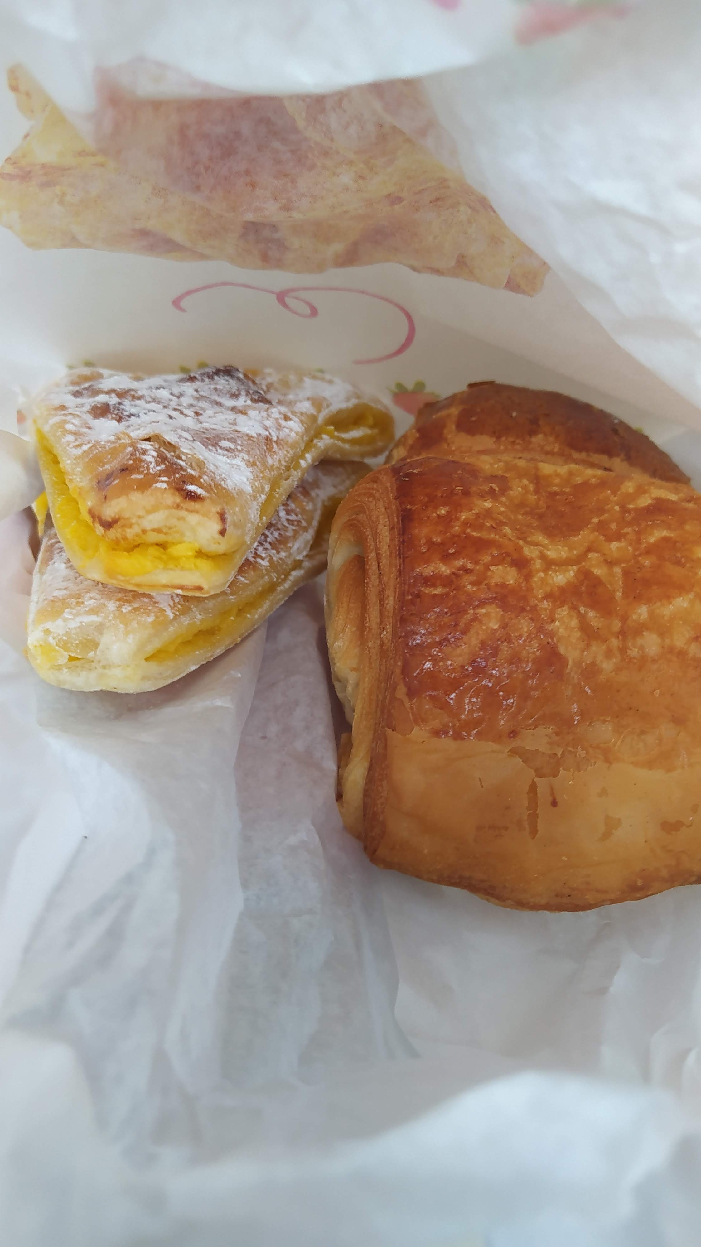 Pâtisseries super bonnes sauf les croissangs, seul point négatif j’arrive ce matin à 6h30 après une soirée (très) arrosée pour chercher des pâtisseries sucrées au sucre pour me rassasier de toute cette beuverie, et les vendeurs/ vendeuses de cette boulangerie m’ont dévisagée comme si j’étais un alien en robe qui venait leur rendre visite 👽 (Pas très agréable comme accueil, je reviendrais avec un maquillage on fleek parfait et une tenue appropriée la prochaine fois promis😚)