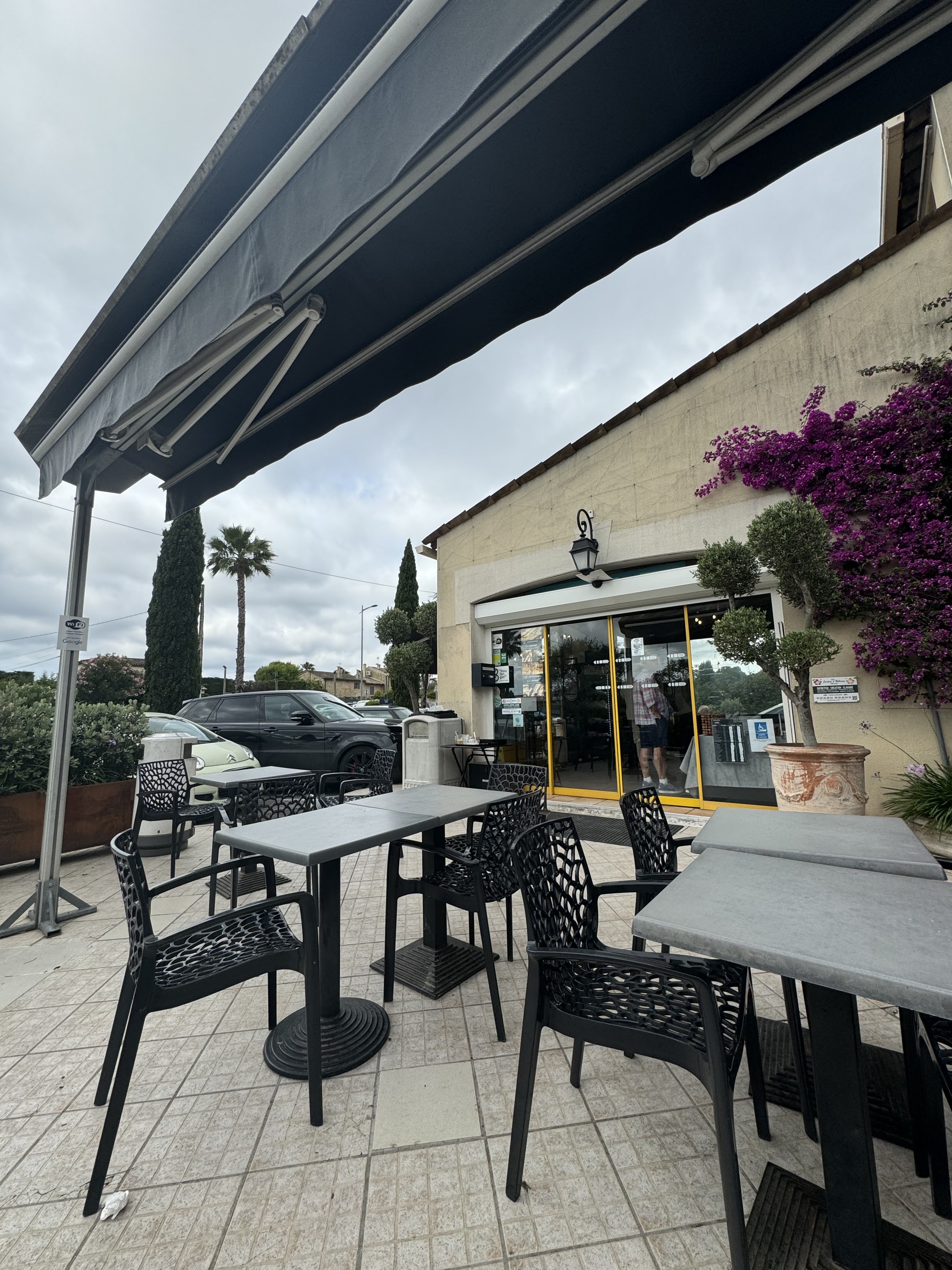 Arrêt café ☕️ pour notre groupe de cyclistes à la boulangerie Pain d’Olivier à Mougins. Super accueil par un personnel sympathique, très bons produits faits maison et terrasse extérieure ou intérieure au choix. Une adresse sûre 👍🏻