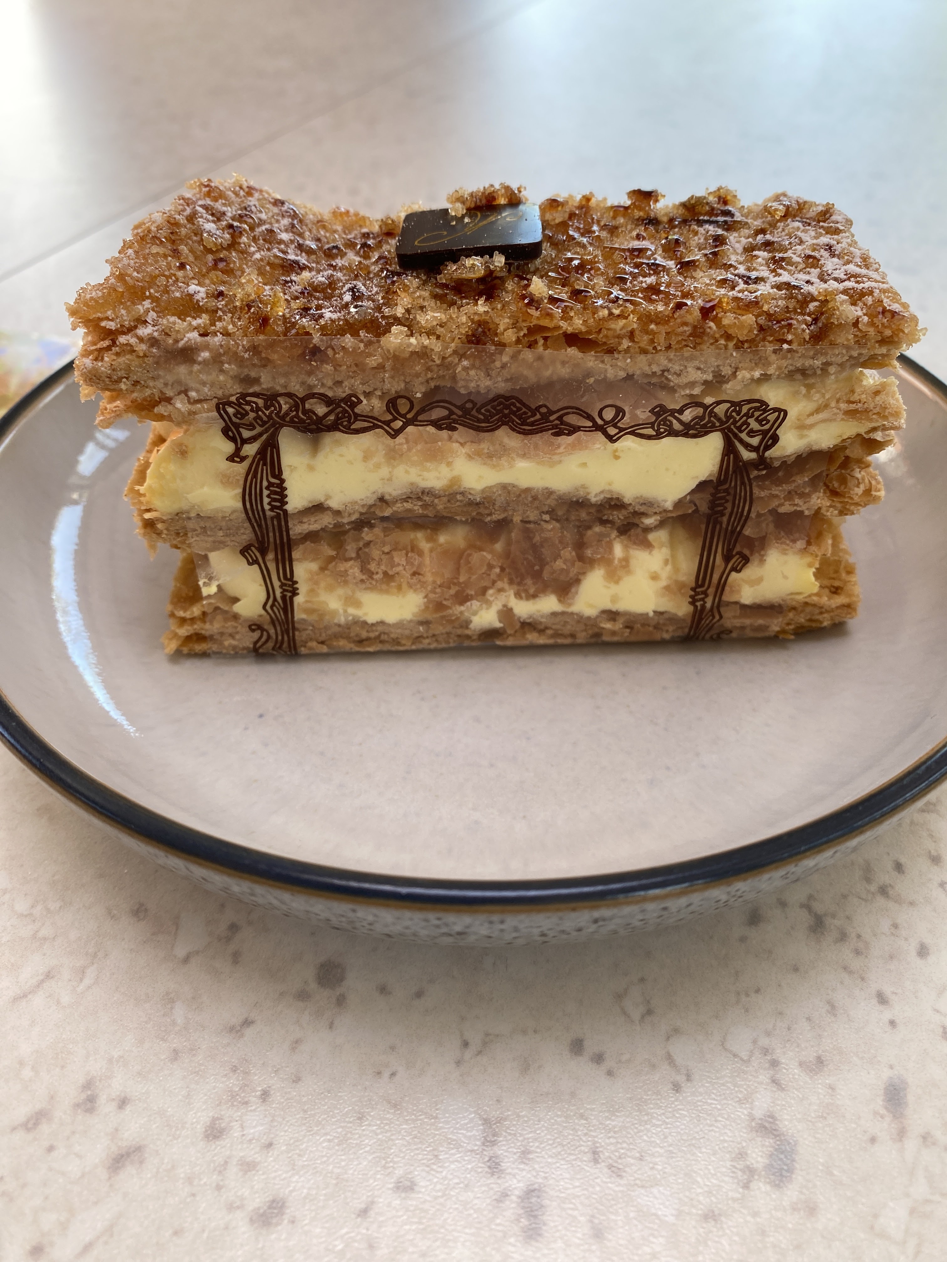 Fabuleuse trouvaille lors d'une promenade. Nous avons mangé quelques mille-feuilles et une bagette traditionnelle au levain. Le pain était délicieux et nous avons vraiment apprécié le mille-feuille, mon mari y est même retourné le lendemain pour en manger un autre