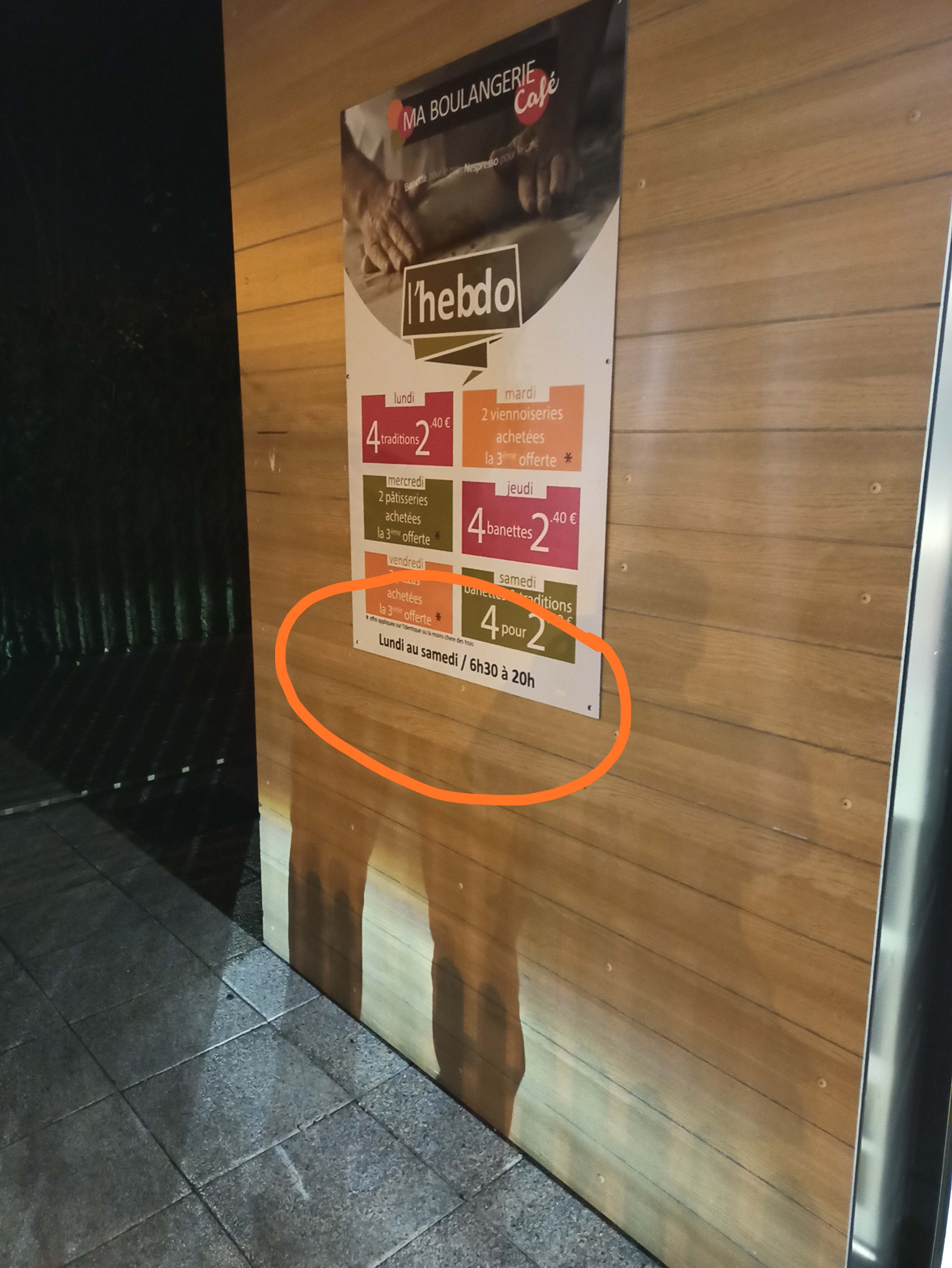 Aucun prix d affiché sur les pâtisseries individuelles. La promo 3+1 baguette offerte ( écrit en gros) n est pas valable le dimanche ( écrit en tout petit )
