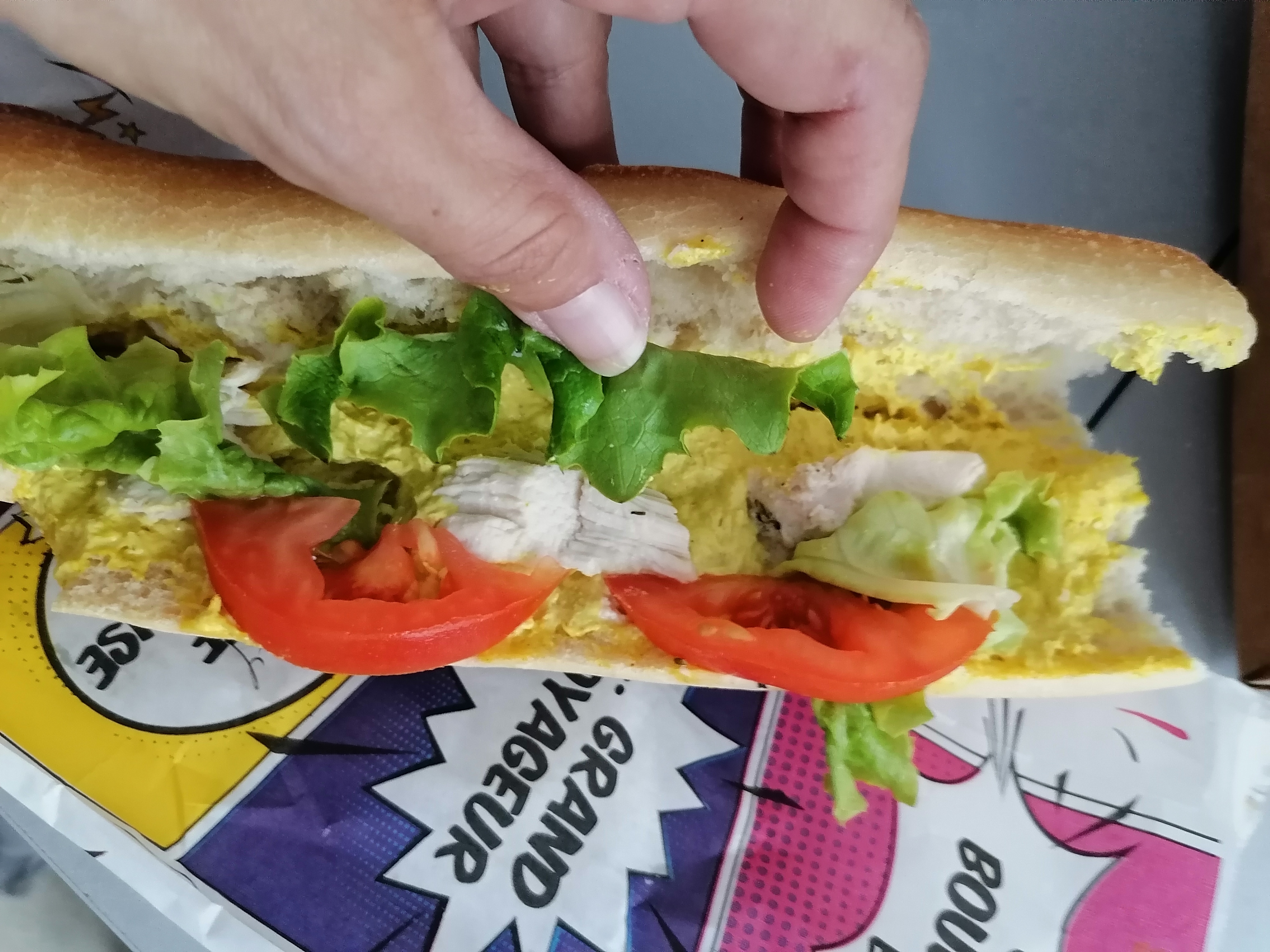 Parce que l on ne peu pas mettre zéro achat d un sandwich ce jour franchement on cherche le poulet ça il était pas moisi comme c est déjà arrivé une honte n en faite pas ce sera aussi bien je me doute que Mr Machu ne prendra pas le temps de répondre pfff