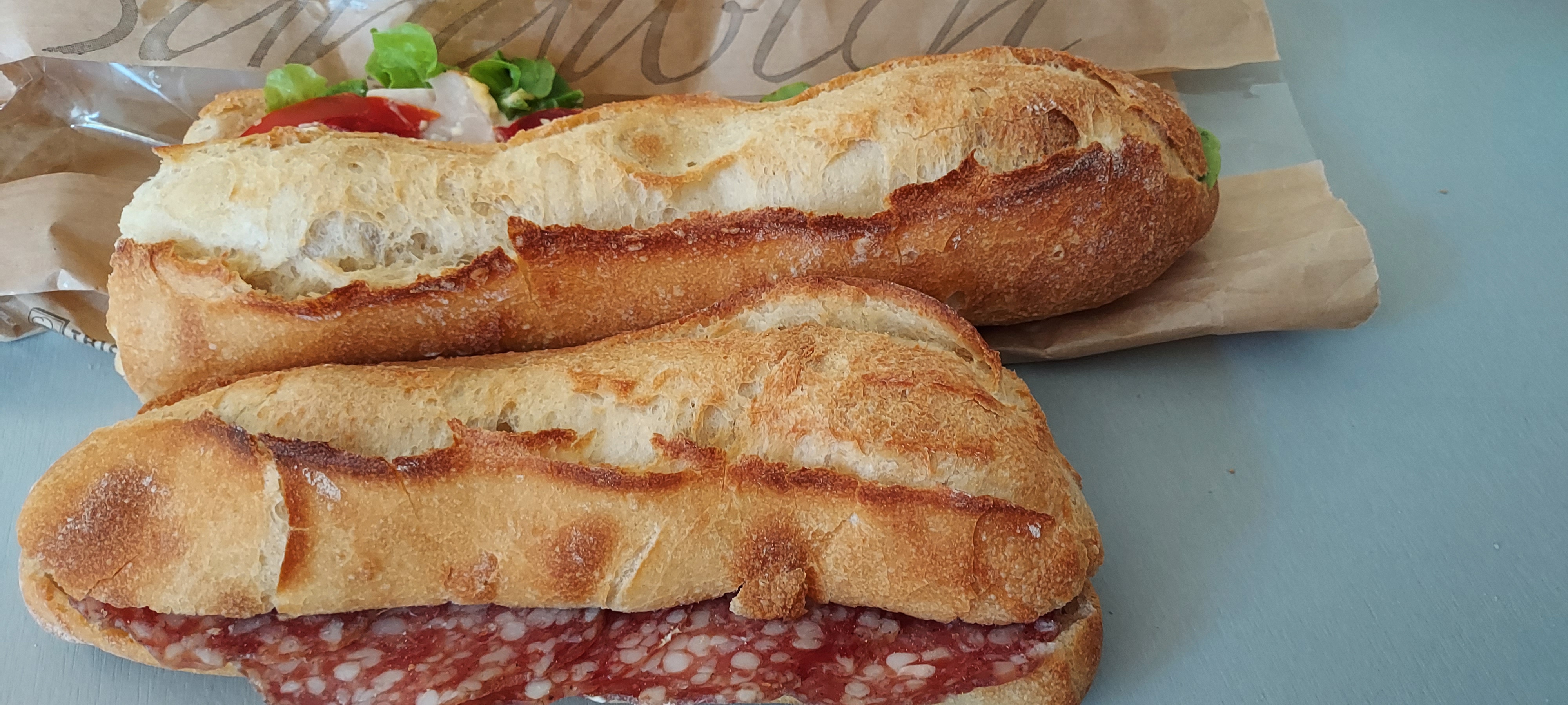Je teste ce jour la formule sandwich à 8euro.. Taille des sandwich.. ridicule pour celui à la rosette mais même prix ! Sandwich mis rapidement dans le sac..pas pu voir sa taille par rapport à l'autre déjà petit. De surcroît pour avoir un dessert style éclair..50 cts de plus à la formule ! Sensation de m être vraiment fait avoir. Pas loin.. les autres artisans fournissent aussi qualité et quantité normale.. dommage j ai voulu privilégier ma ville. J irai donc ailleurs..grezieu..messimy la qualité est là aussi. Ps. Ci joint photo ..la taille du grand sandwich eqt celui de ma main judqu au poignet .. l autre tient dans a paume