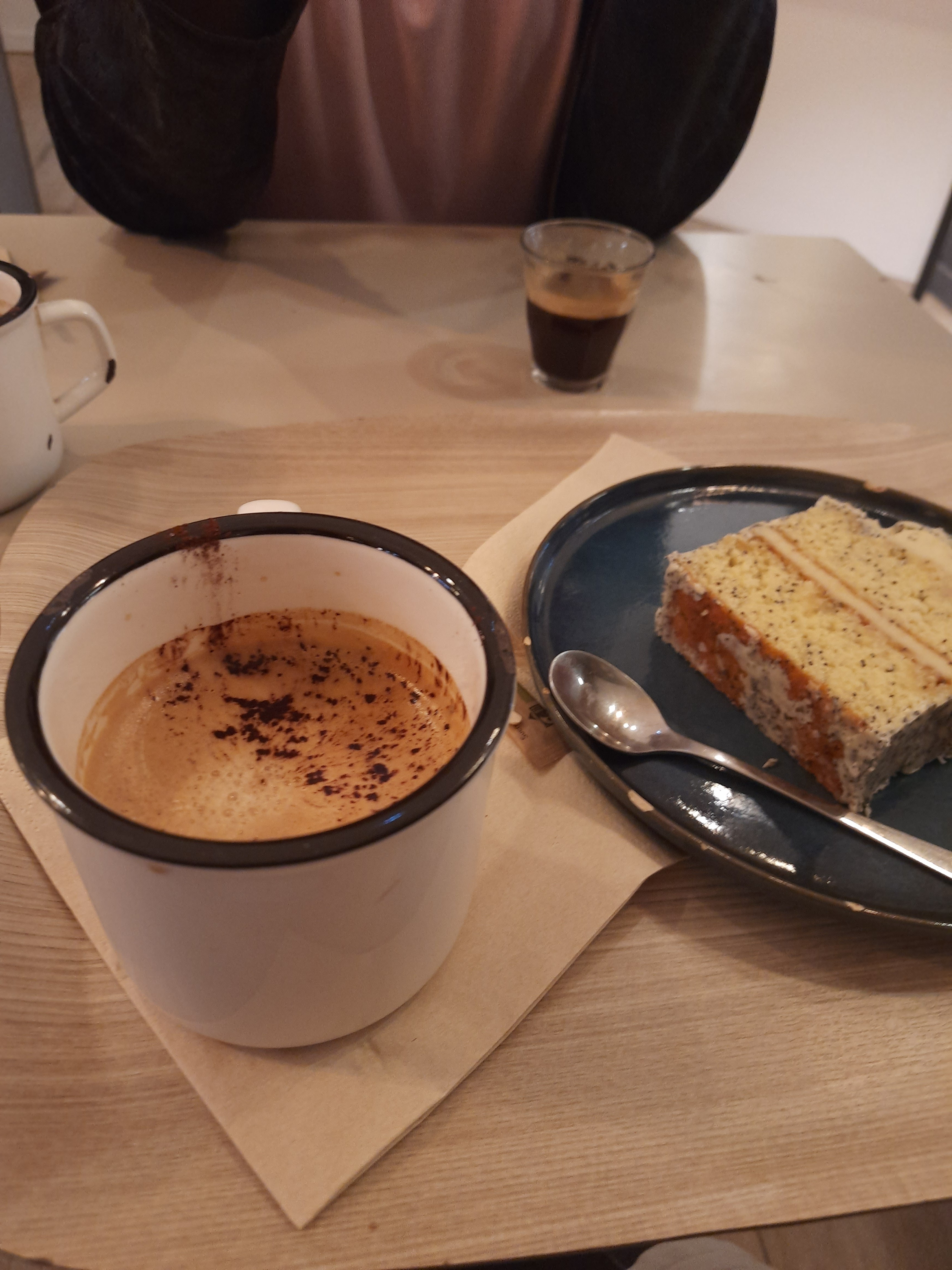 Un chaï latte délicieux, une viennoiserie croustillante ou un cake citron-pavot à tomber, le tout dans un cadre agréable, le personnel très sympa, souriant.