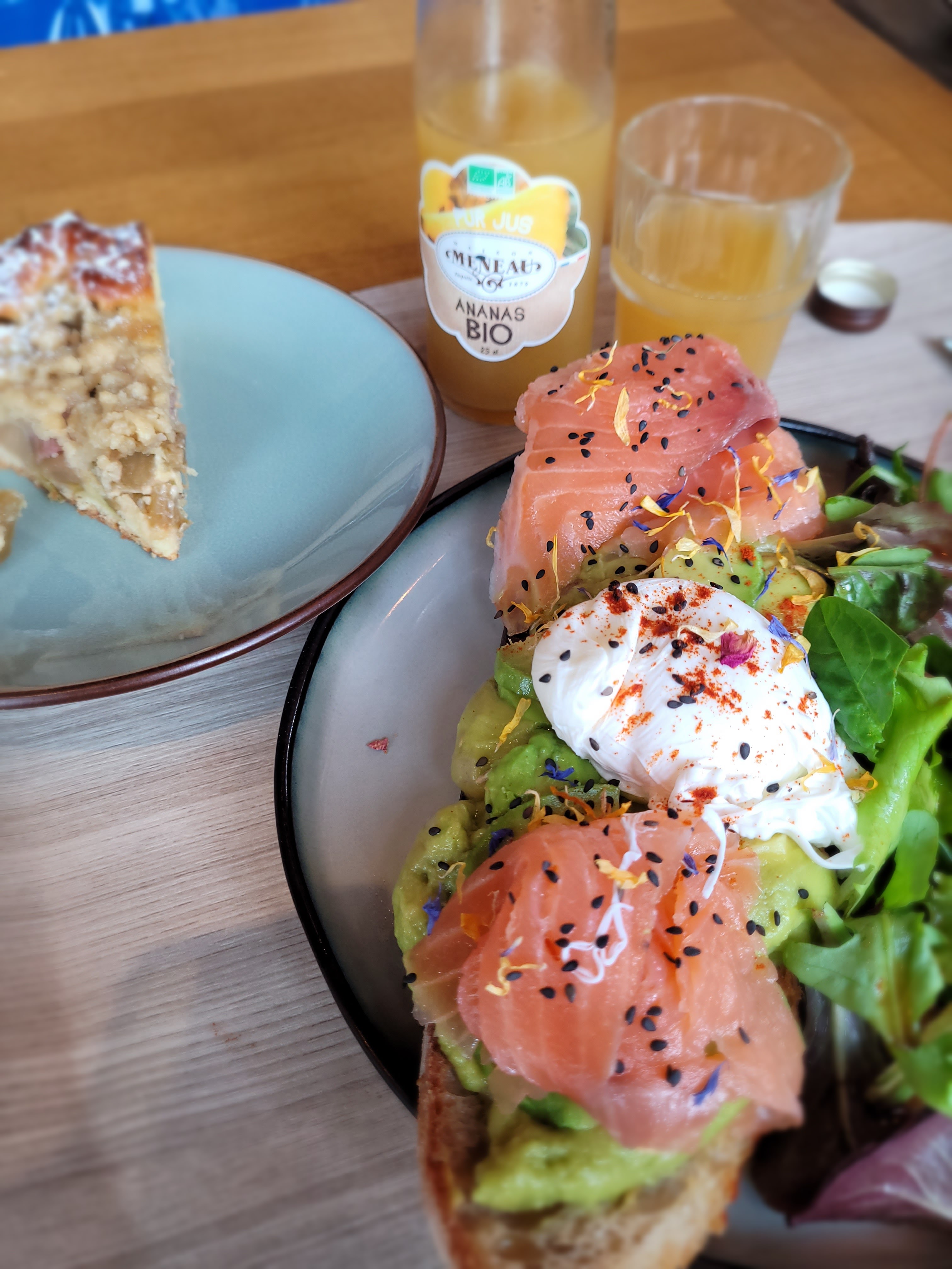 Nous y sommes allés pour bruncher (avec réservation). Le cadre est très sympa, les produits sont bons et de bonne qualité, et le choix est diversifié. Toutefois, nous avons été plutôt déçus par l’accueil (contrairement aux boutiques de Gambetta et de la gare où le personnel est toujours très agréable et l’ambiance au top). Ici, nous sommes arrivés et il n’y avait pas vraiment d’accueil. Personne ne nous a pris en compte alors que le personnel passait devant nous. Il a fallu s’avancer tout au fond. On sentait l’équipe pas trop dispo. Notamment un membre de l’équipe qui parle très fort à ses collègues et qui n’est pas hyper agréable avec les clients. On a presque l’impression de déranger. Au niveau du choix sur le buffet, ça manquait juste de viennoiseries (pains au chocolat et croissants). Nous avons quand même passé un bon moment 😊 Je tenais juste à signaler pour l’accueil, c’est pourquoi j’ai enlevé une étoile.