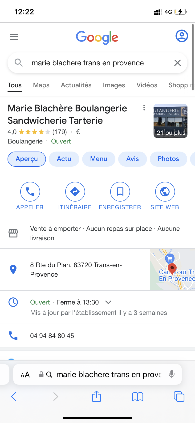 Marie Blachère de Draguignan ferme à 19h30. Horaires à rectifier ! Merci