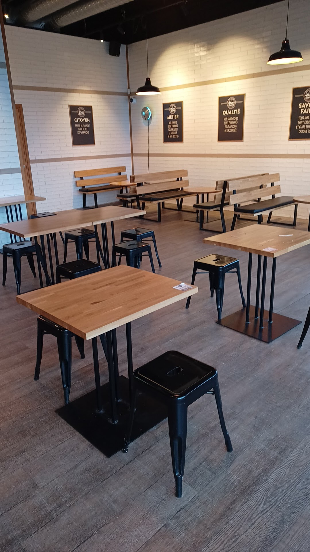 Cela reste industriel mais correct. Service parfois très bien, parfois mal organisé. Du bon pain malgré qu'il soit industriel et suffisant pour des repas sur le pouce le midi.